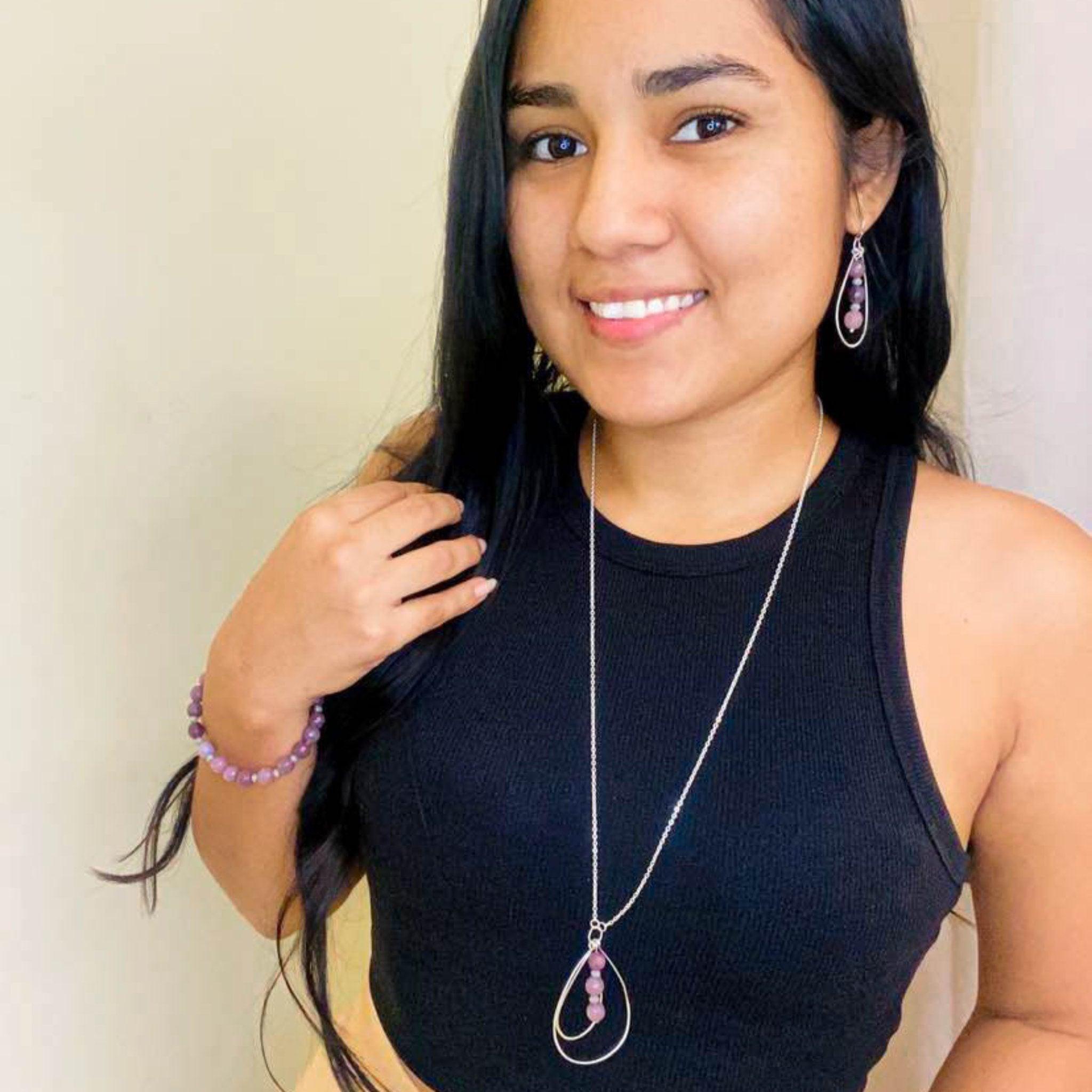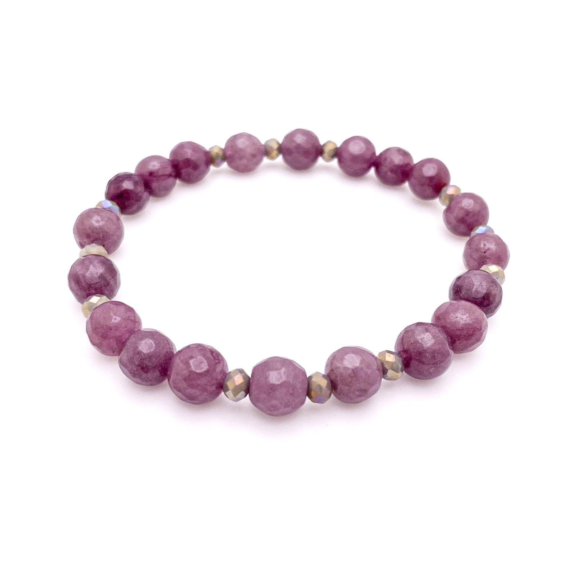 The Ash Tree bracelet makes a perfect addition to your fall wardrobe. Its dusty purple agate and silver iridescent crystals add a pop of color and shine that will instantly freshen up any outfit. Its stretch design also ensures comfort and ease of wear.