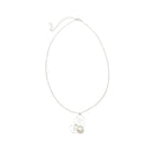 Flutterby is a 10mm freshwater pearl with a hand-wired silver plated wire wing.  She hangs from a 16 inch silver plated chain with a lobster clasp closure and 3 inch extender.