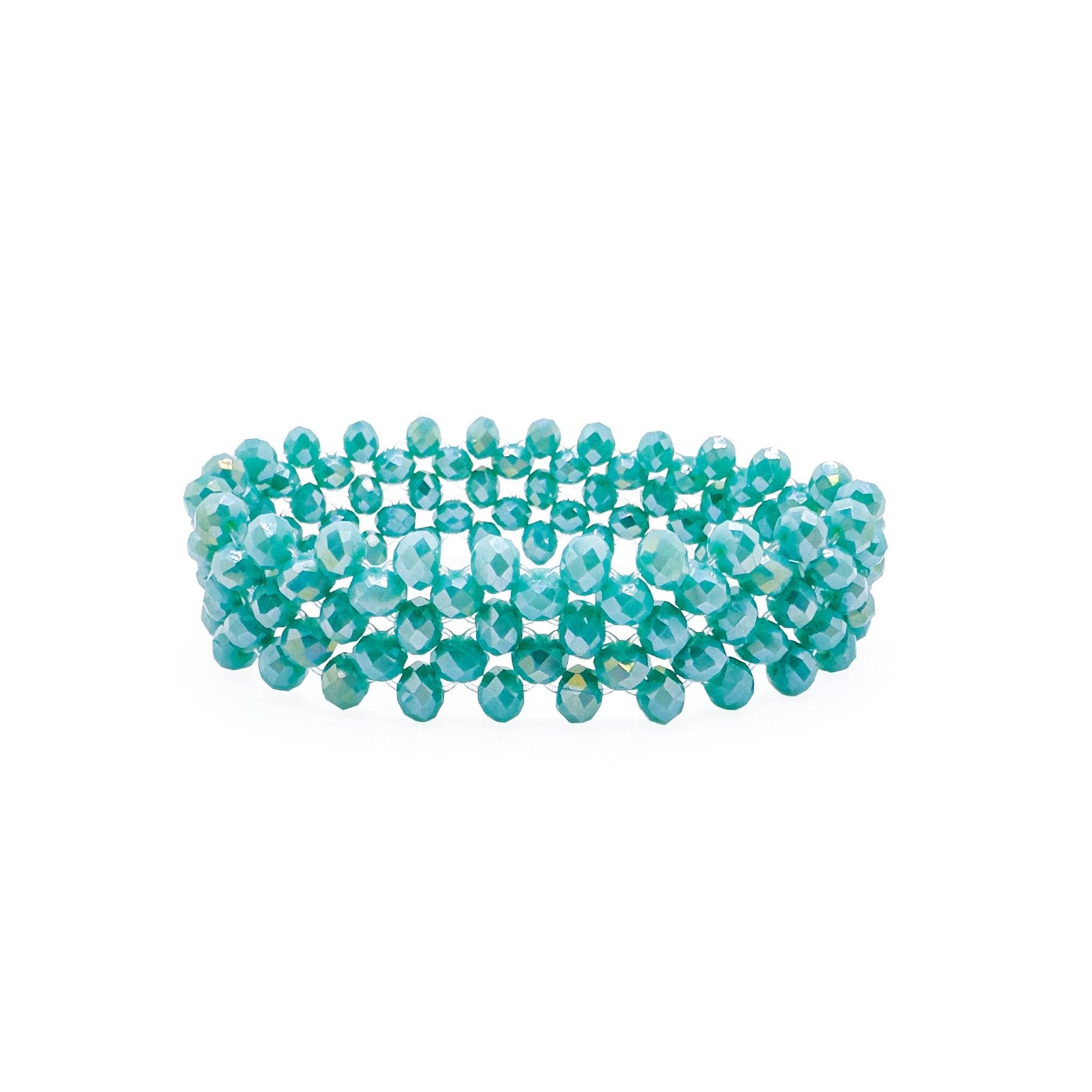 Teal blue faceted crystals are woven together on stretch cord to create this 6 3/4 inch sparkler!