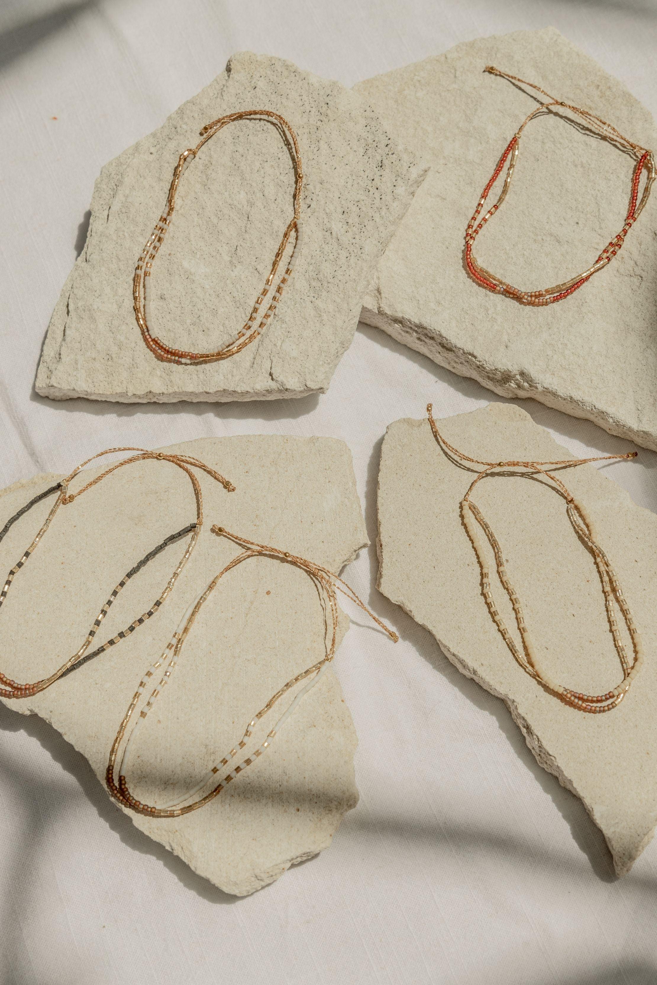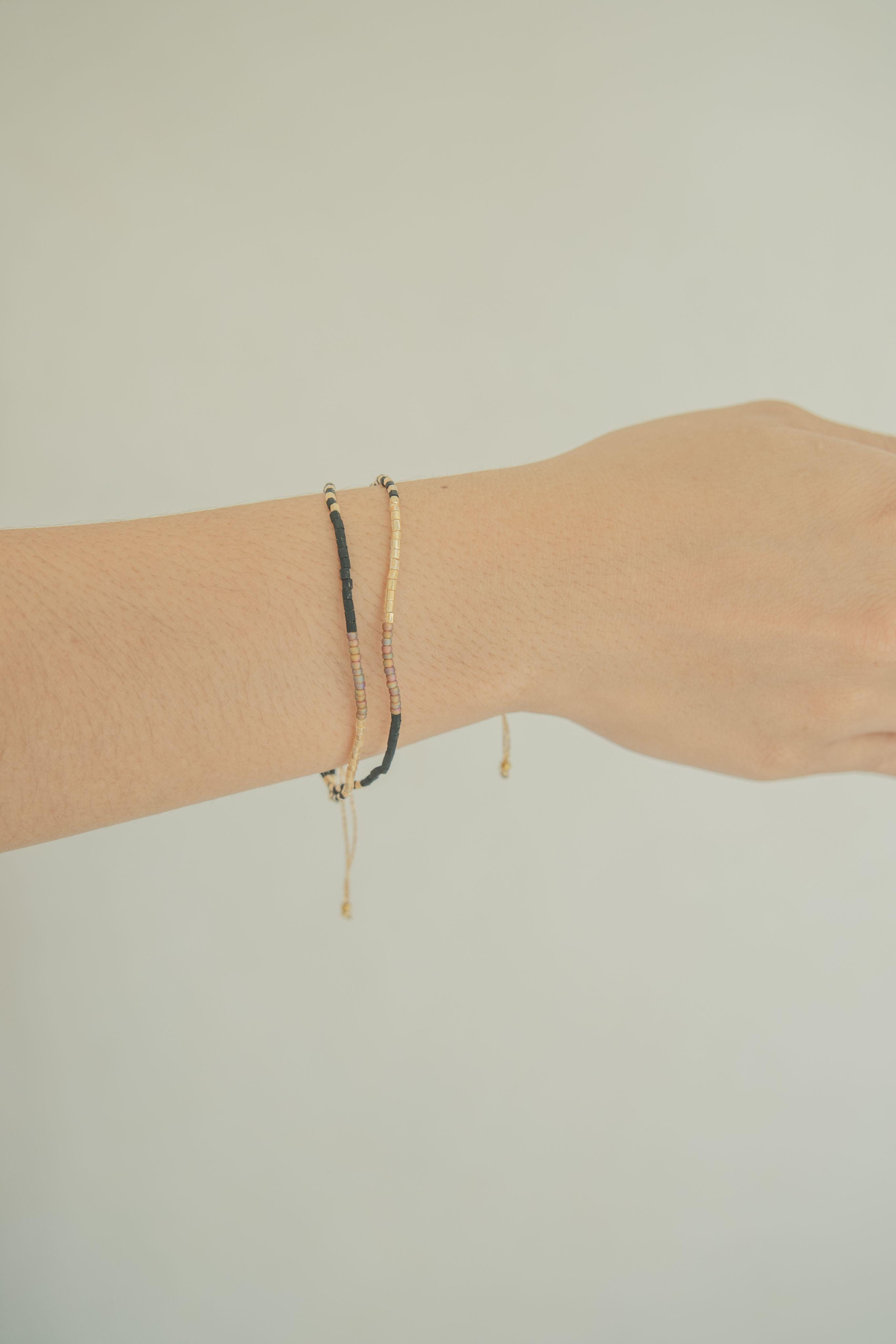 This elevated bracelet not only adds a small dash of color, but also beautiful gold plated beads for an elevated look. This adjustable piece is perfect for wrists of all sizes. Choose from 5 different colorways.
