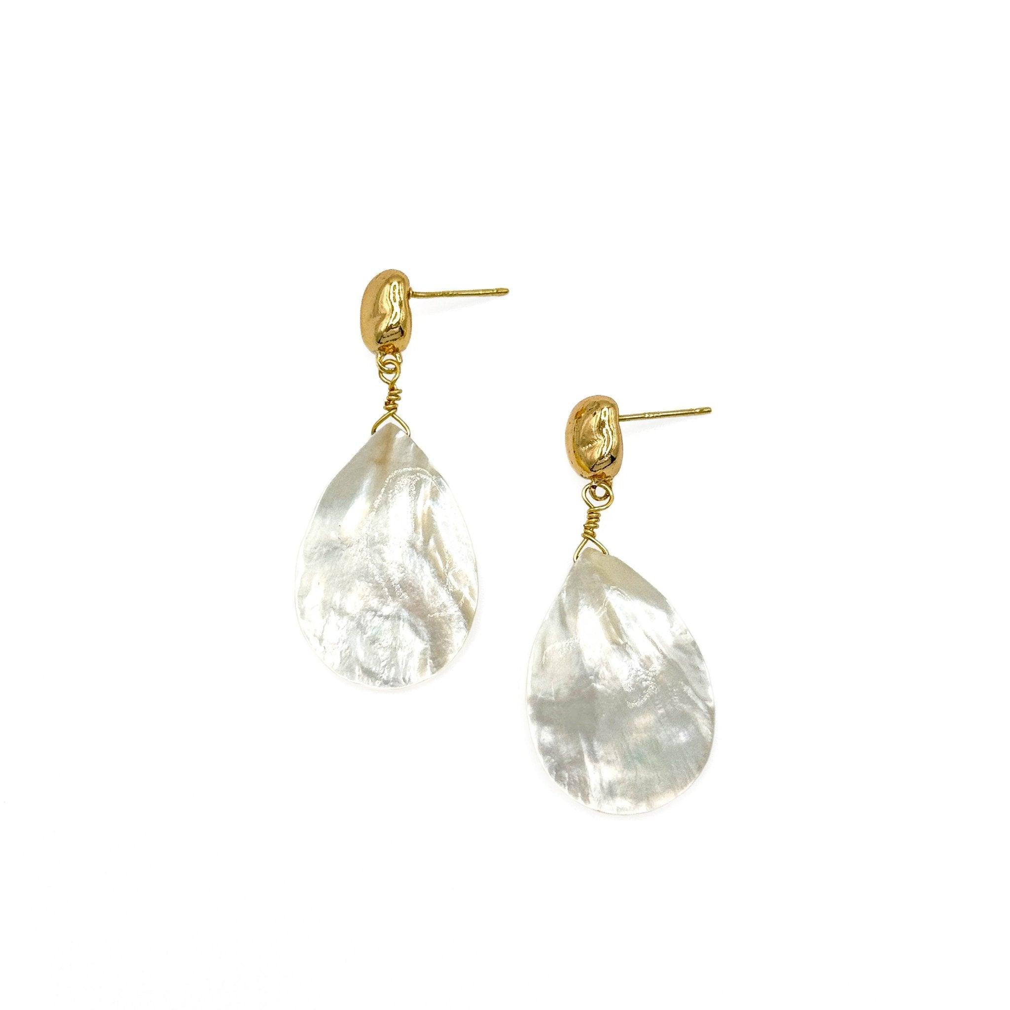 When you're looking for a new summer statement earring, look no further than Mira! It means 'look' in Spanish and it will certainly be turning heads. A gold filled oval shaped stud post holds a hand-wired teardrop shaped mother of pearl piece. 1 7/8 inch total length.