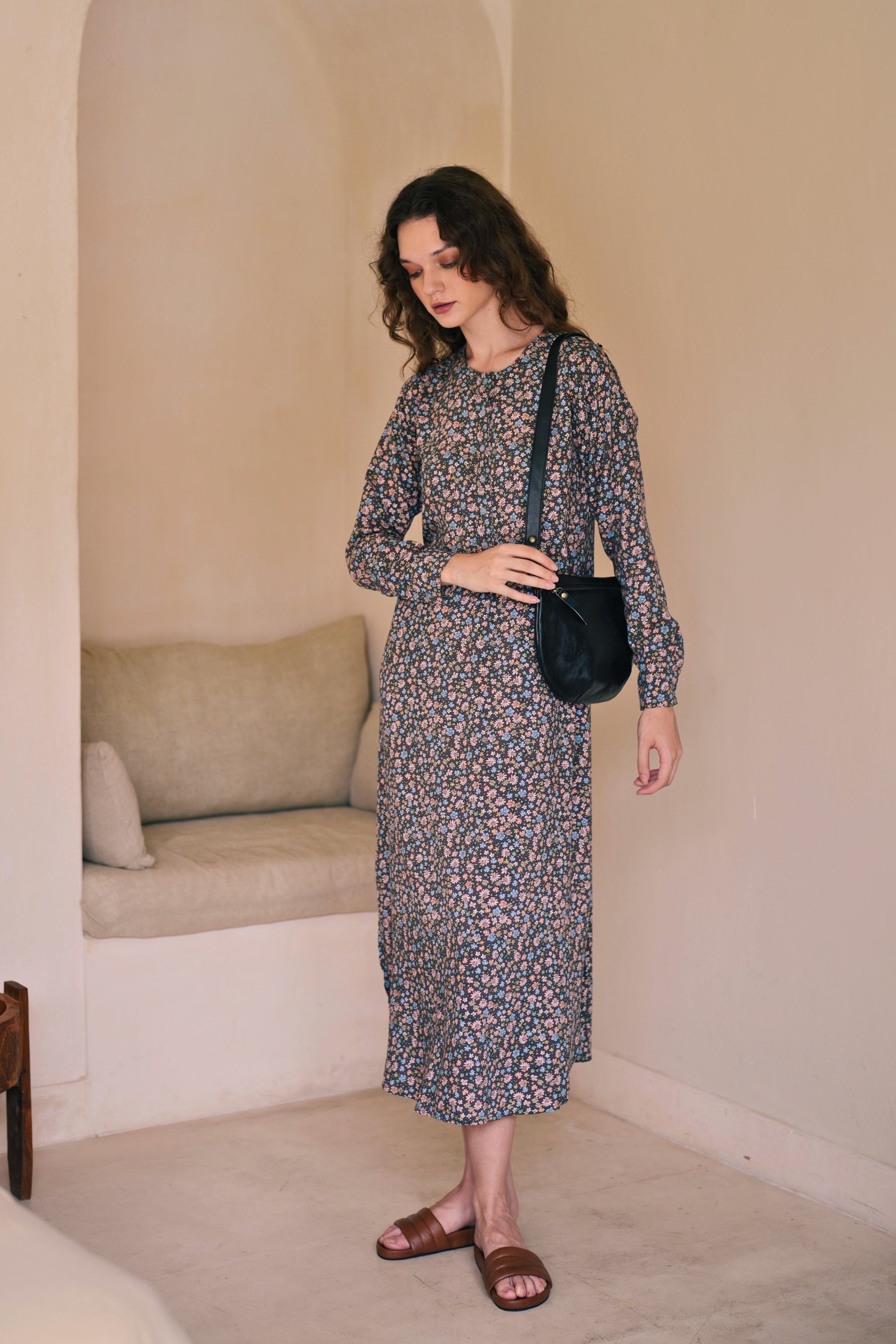 Naomi Leather Sling Bag in Black