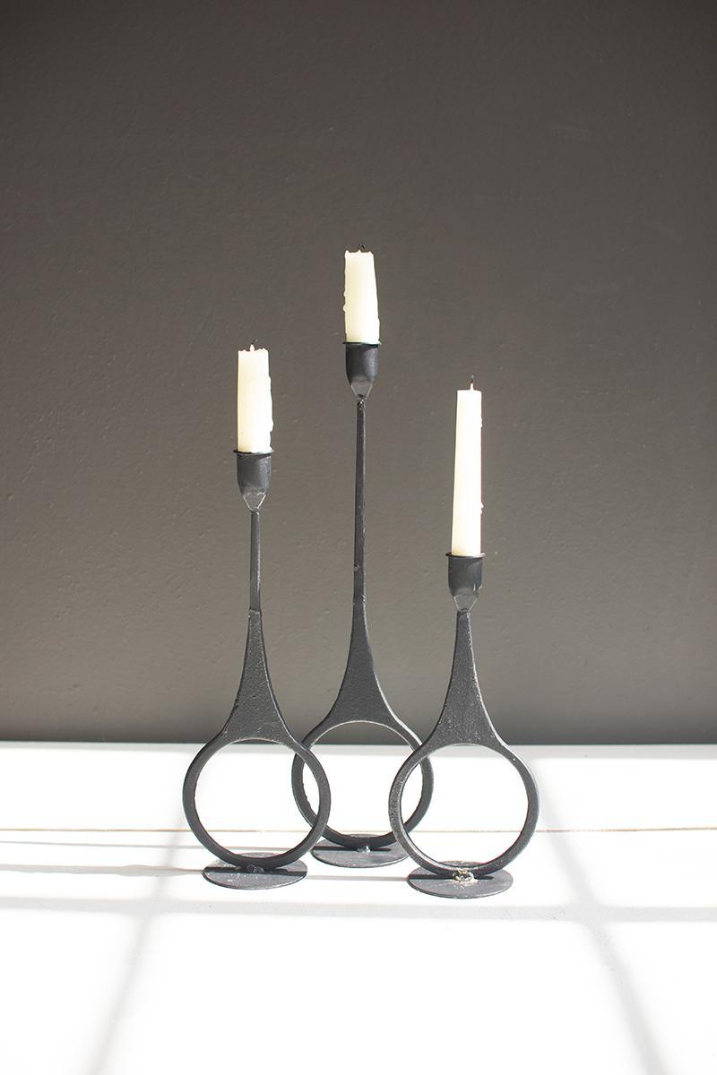 Set Of Three Cast Iron Taper Candle Holders W Ring Detail