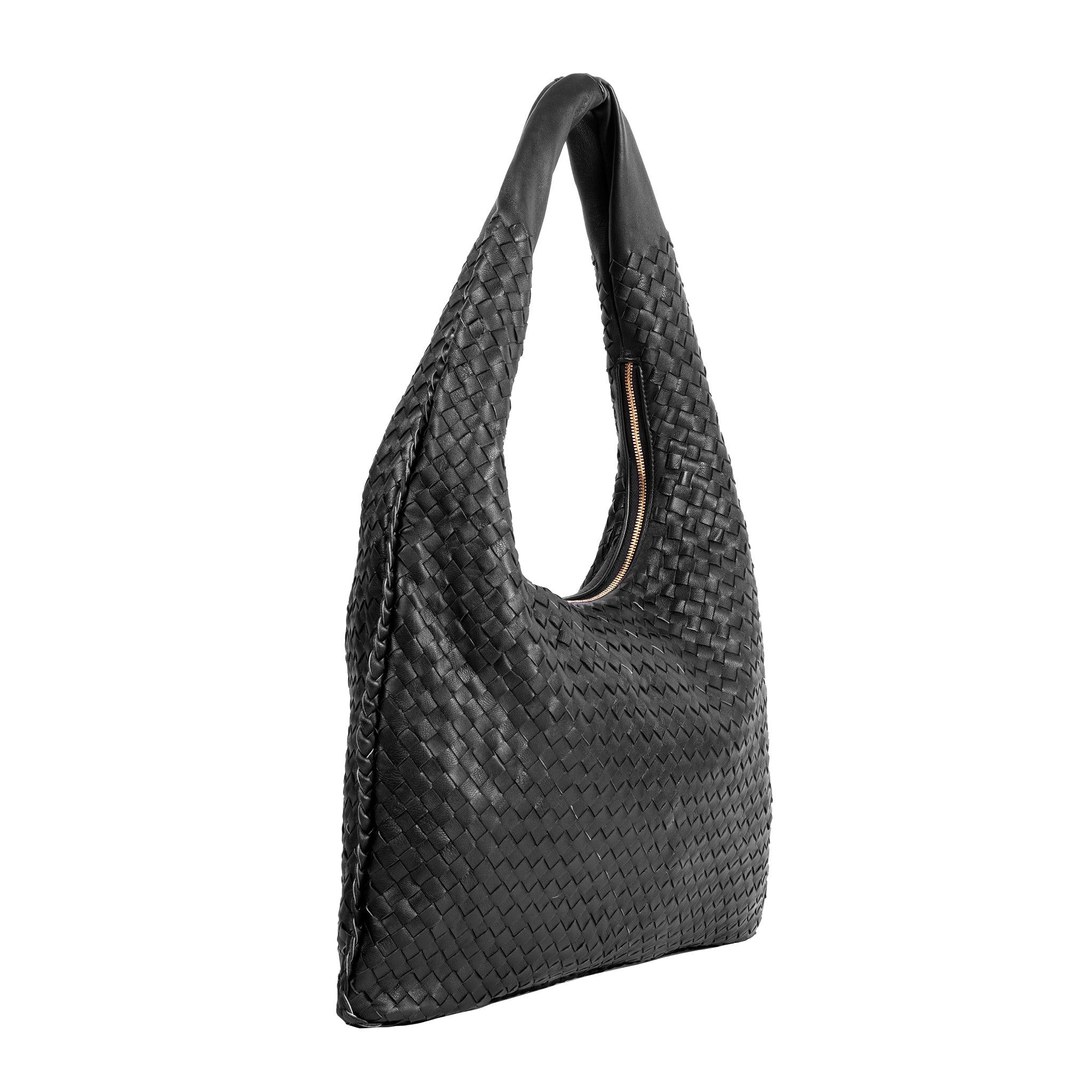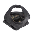 Woven Leather Slouchy Hobo Bag-Black