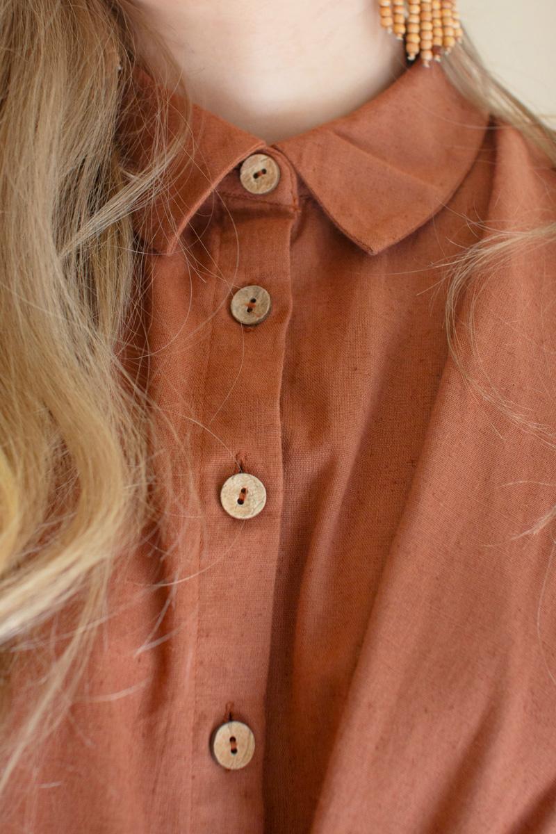 Long Sleeve Buttondown Dress W Front Tie Detail Cinnamon