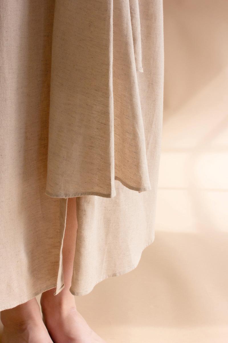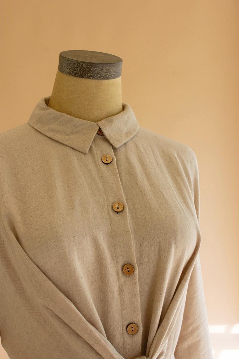 Long Sleeve Buttondown Dress With Front Tie Oatmeal (Pack Of 3)
