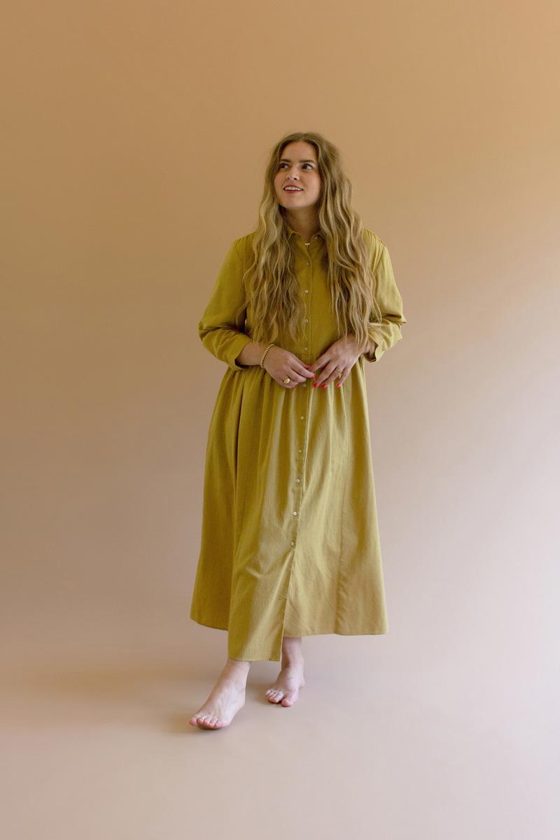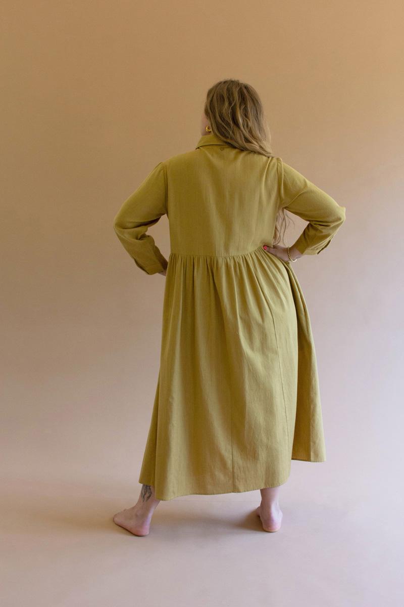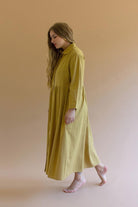 Long Sleeve Buttondown Dress With Pockets Pistachio
