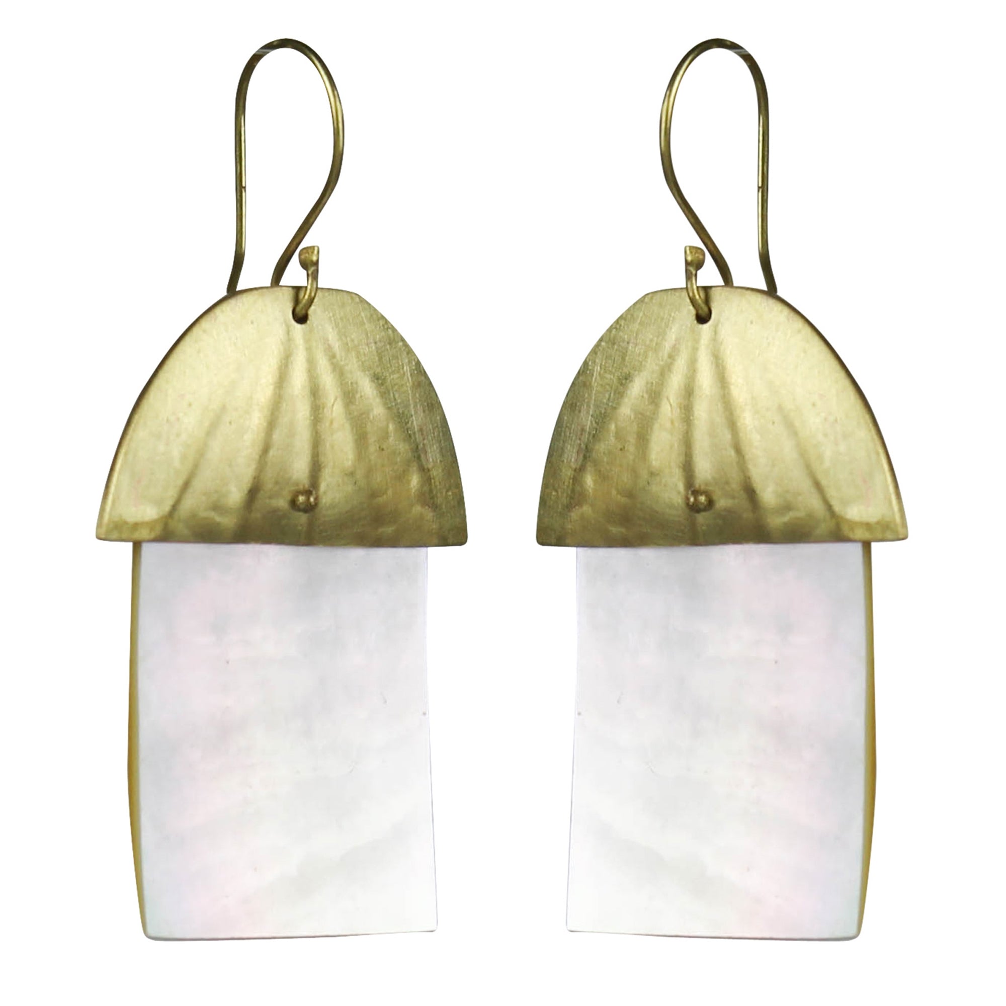 Earring, Brass Cap & MOP - Rectangle