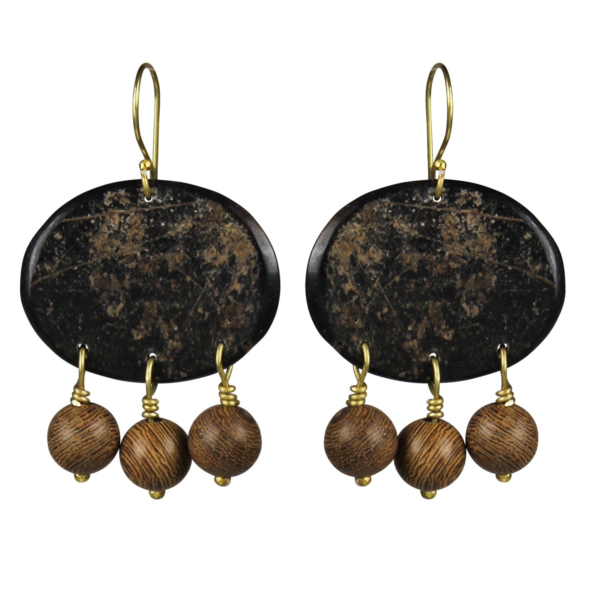 A hand carved horn oval and a wood bead are linked in the perfect mix of natural materials.