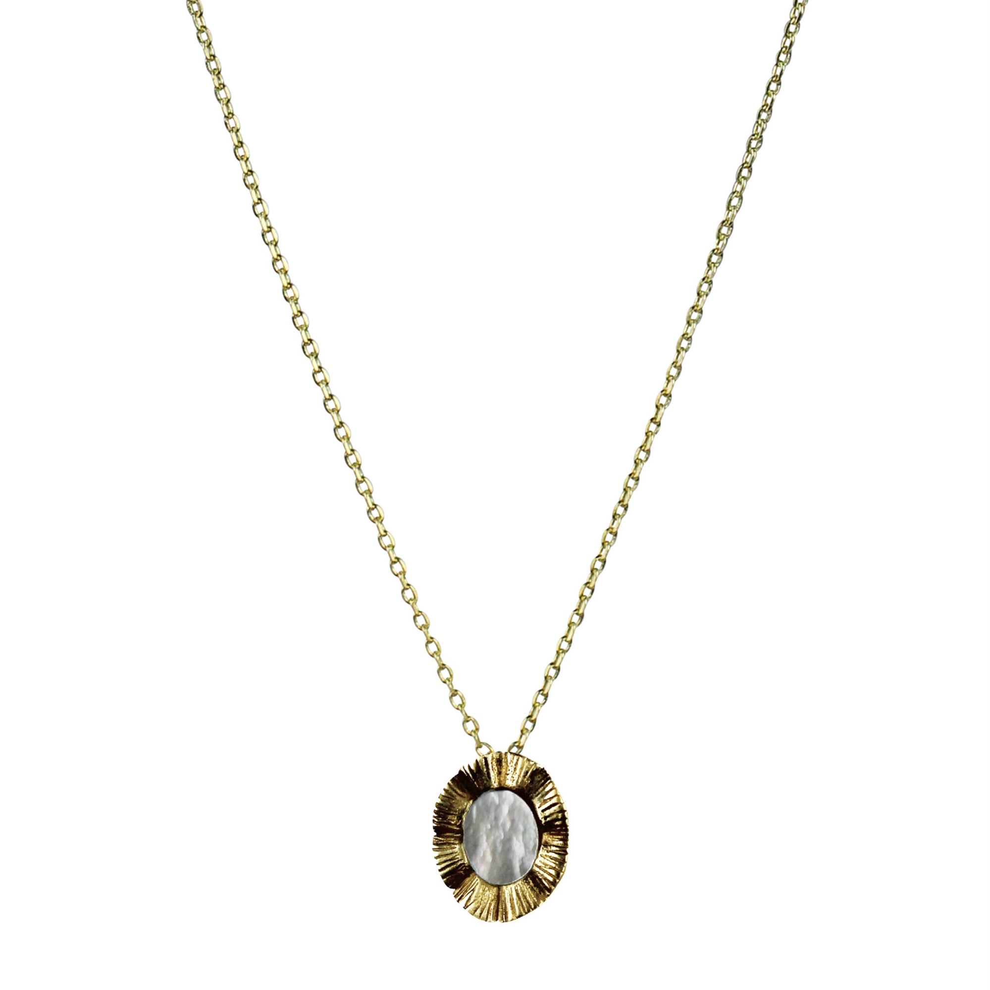 Necklace, Brass & MOP Medallion - Rays