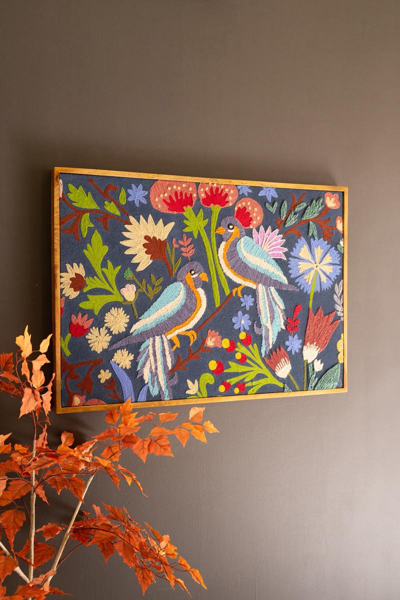 Framed Hand Hooked Art Birds And Flowers