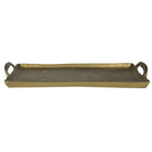 A perfect scale brass tray with handles, cast aluminum and plated in brass for durability and elegance. Its sleek design combines functionality with contemporary style, perfect for serving or displaying with sophistication. Food liner recommended.