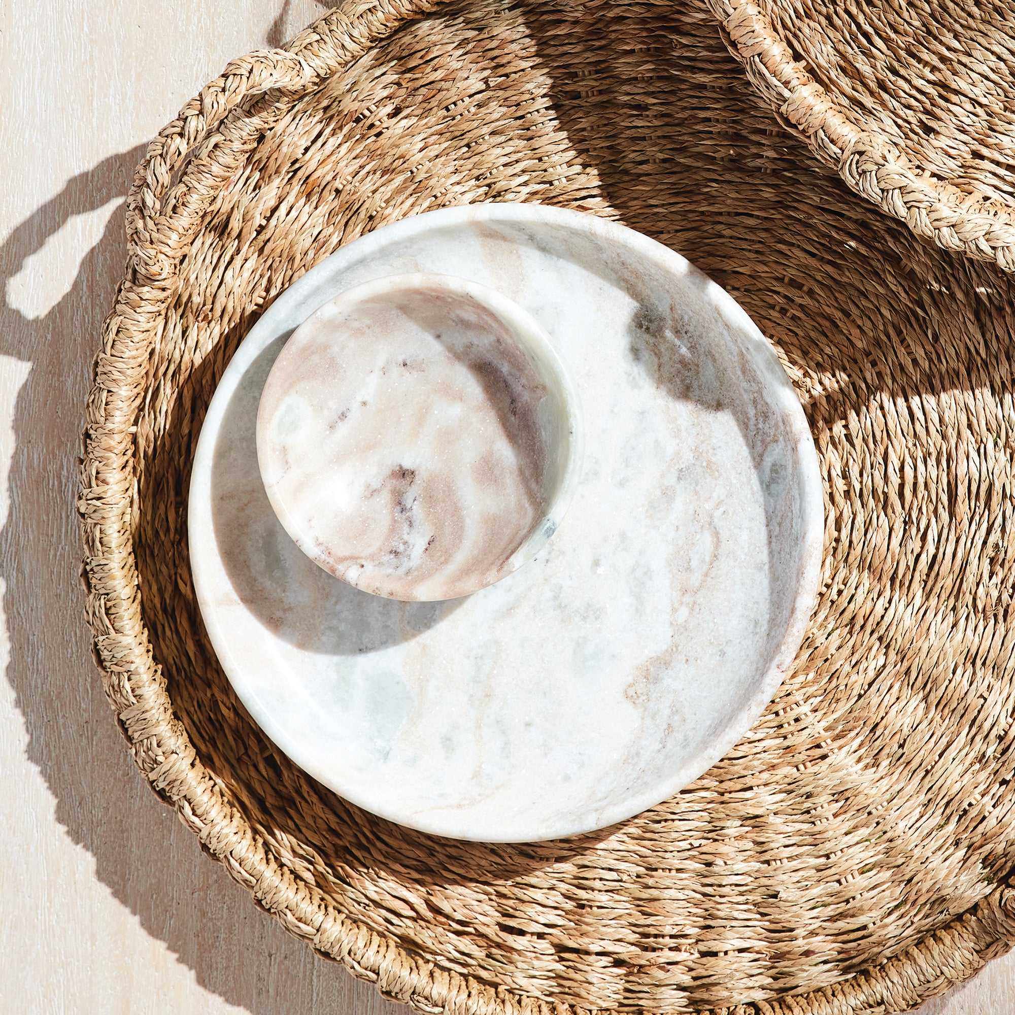 For interior decorative use, or use as a serving piece. To prevent staining of marble use with dry food only. Marble is a natural material with inherent variations in veining and coloration, just the way we like it.