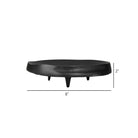 Cast of aluminum with a matte black finish, this footed dish featured and organic shape with a slight indentation to become your new favorite catch all. For decorative use only.