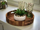 • Kalmar Home's Round Acacia Wood Serving and Charcuterie Trays - a stylish and functional way to serve and showcase culinary creations, display decorative items or use as a stunning centerpiece on a table or kitchen island.