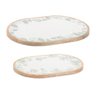 Wood Mushroom and Floral Print Tray (Set of 2)
