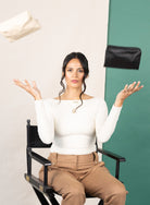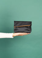 The Asymmetric Makeup Bag combines sustainability with high-quality craftsmanship. Designed for those who value both style and function, this luxurious bag offers a spacious interior to keep your beauty essentials organized. It's secure zipper closure, complemented by fold-over brass snaps, ensures easy access while adding a refined touch. Perfect for travel or daily use, this versatile makeup bag is a must-have for anyone seeking elegance and practicality in one chic design.