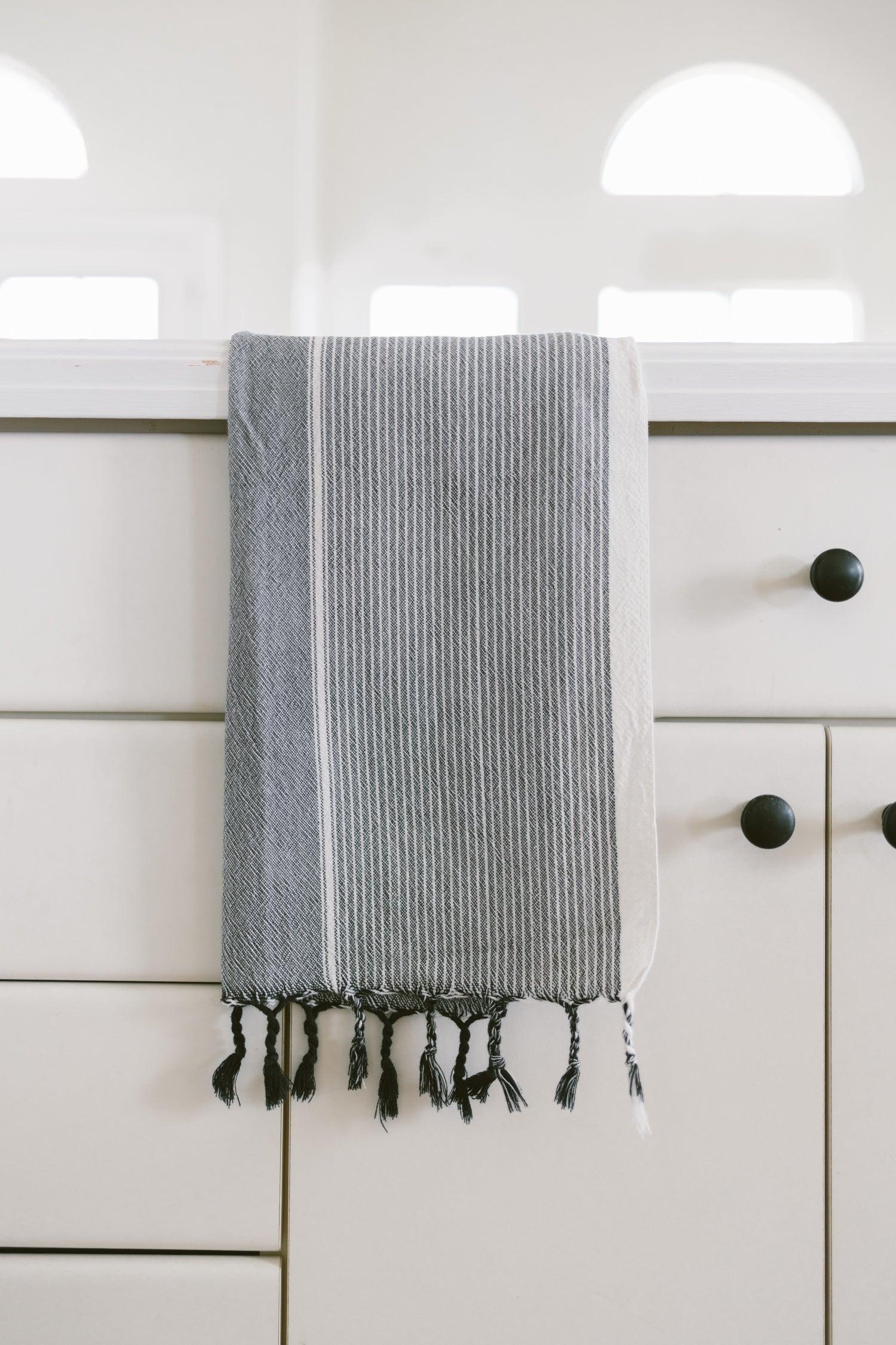 Handwoven by skilled Turkish artisans, our Grey Stripe Tribeca hand towel is lovingly crafted using ancient weaving techniques that have been passed down for generations. Woven from the highest quality premium cotton, our hand towels are lightweight, absorbent, and suited for everyday use. Perfect in both a kitchen or bathroom.