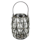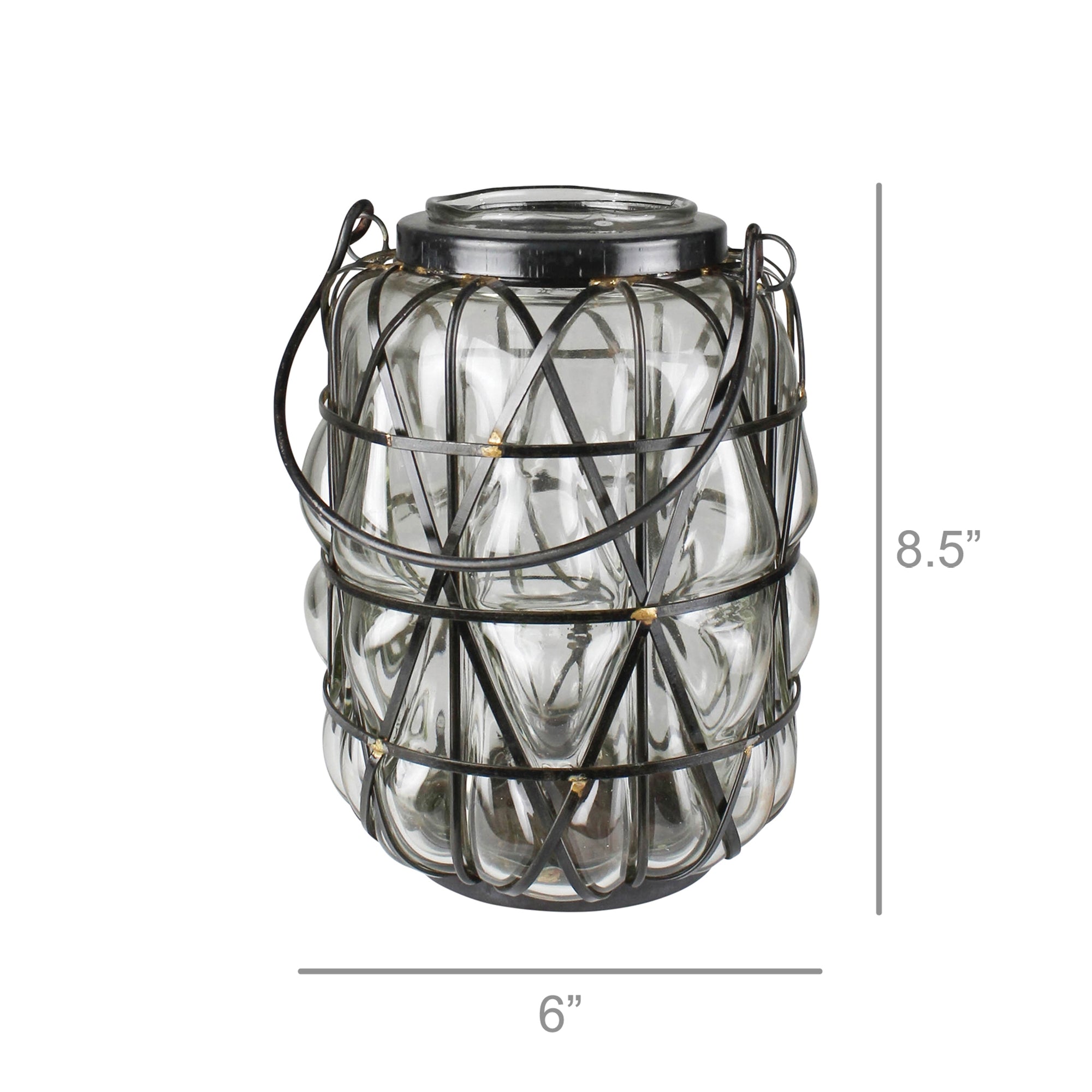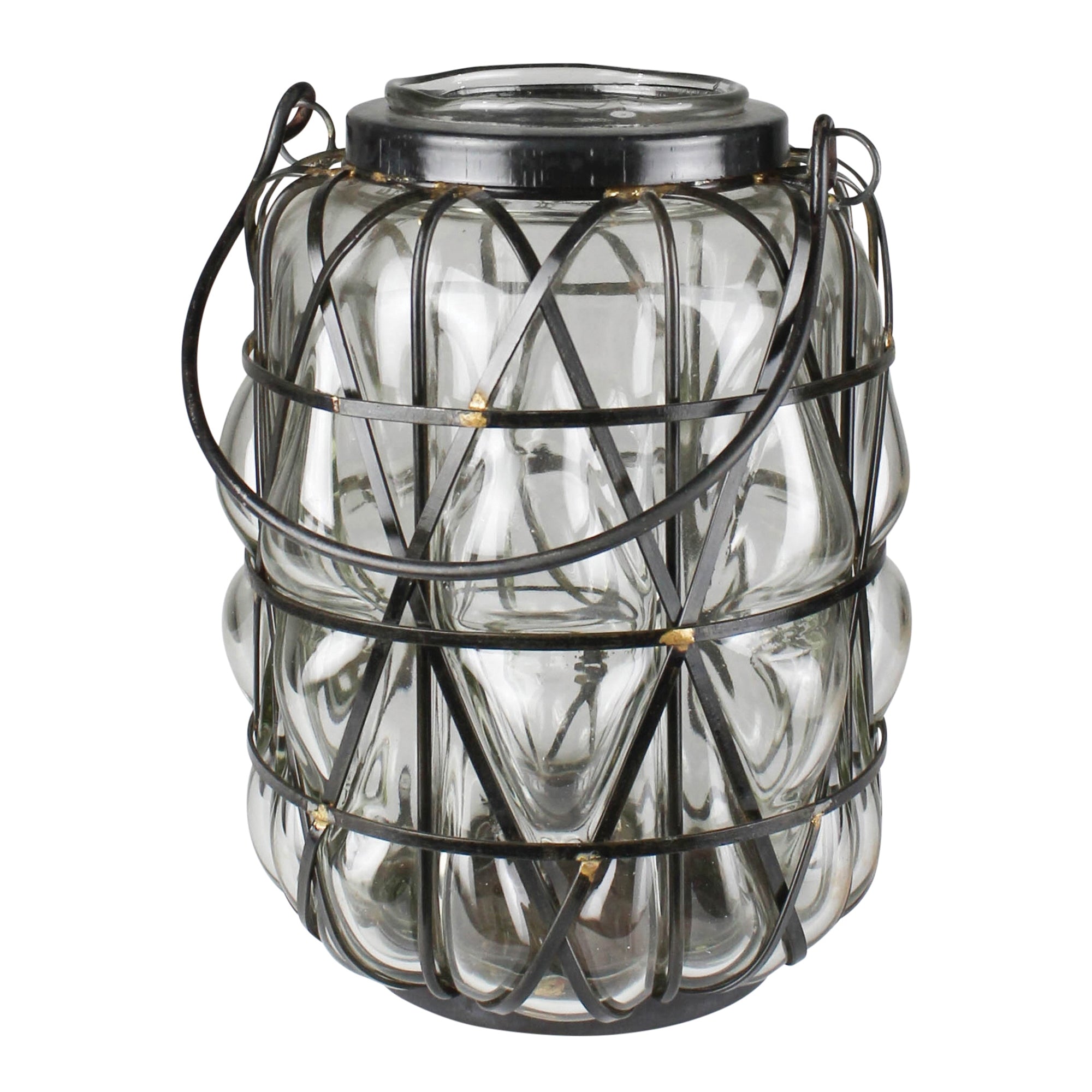 Iron frames are blown into with hot glass, forever encasing the bulbous shapes. The girth of each section of blown glass reflects the candlelight is a luminous way, either sitting or hanging this lantern is your go to for entertaining. 5” handle