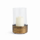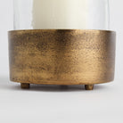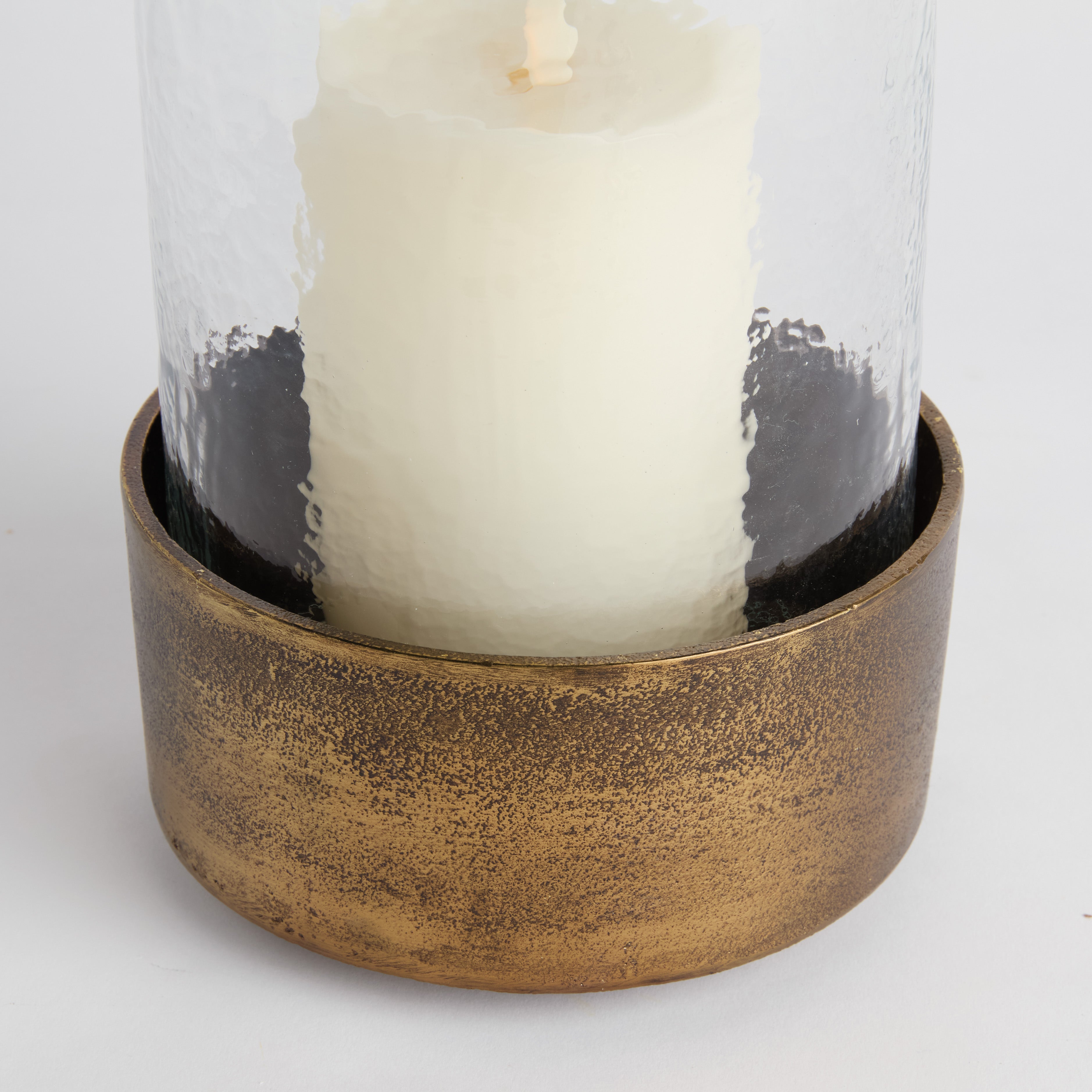 Made of hammered glass and cast aluminum, this hurricane has a classic look. The antique brass finish plays well in transitional spaces. Add a pillar candle and enjoy the warm glow.
