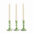 Traditional style in a contemporary fabrication, this set of taper holders is designer-inspired. Made of enamel coated aluminum, they have a nice gloss finish. A great addition to any tablescape.