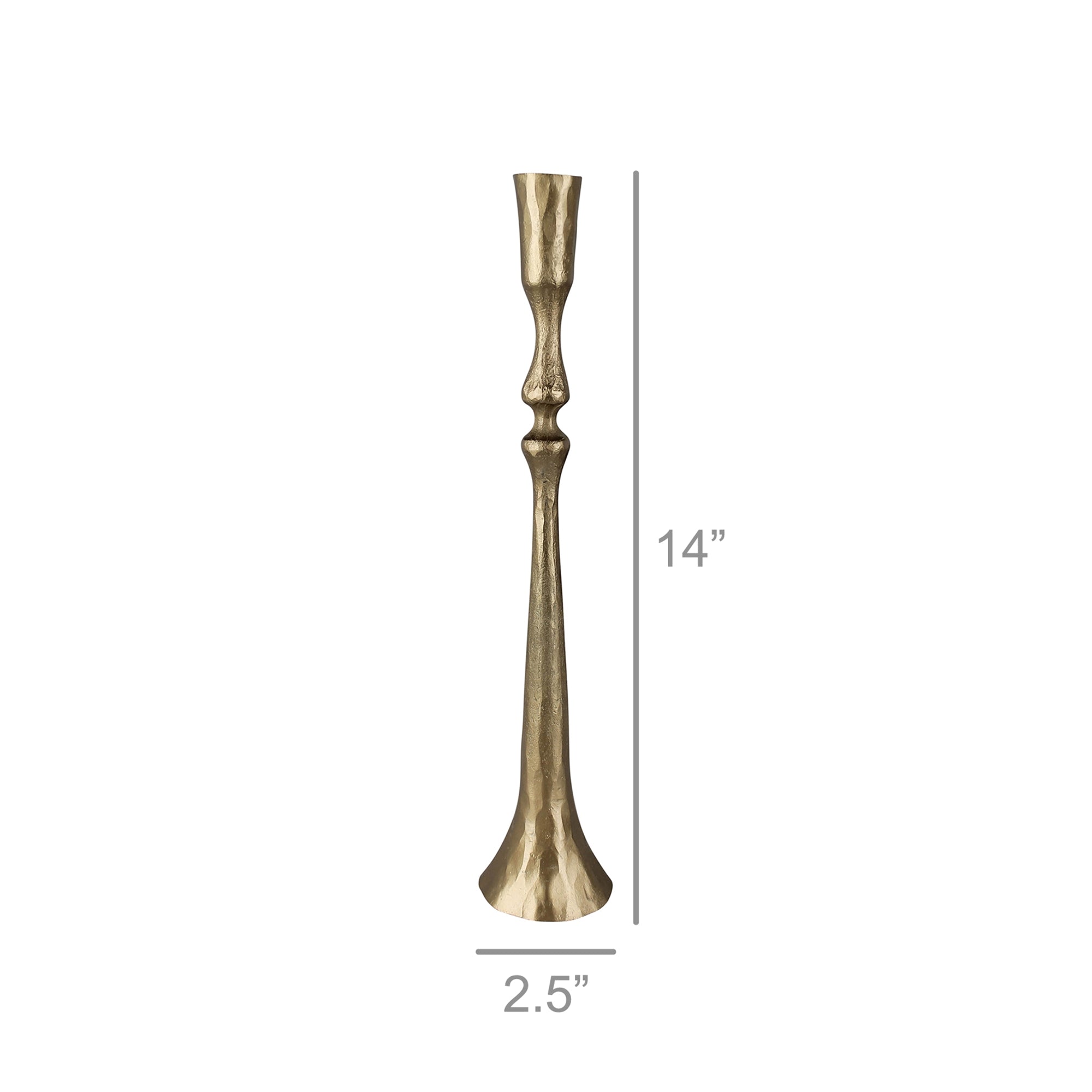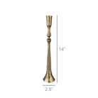 Cast of metal with a slim taper holder and flared bottom, this tall and slim taper holder is strong in character when solo and beautiful when amassed. Brass plated.