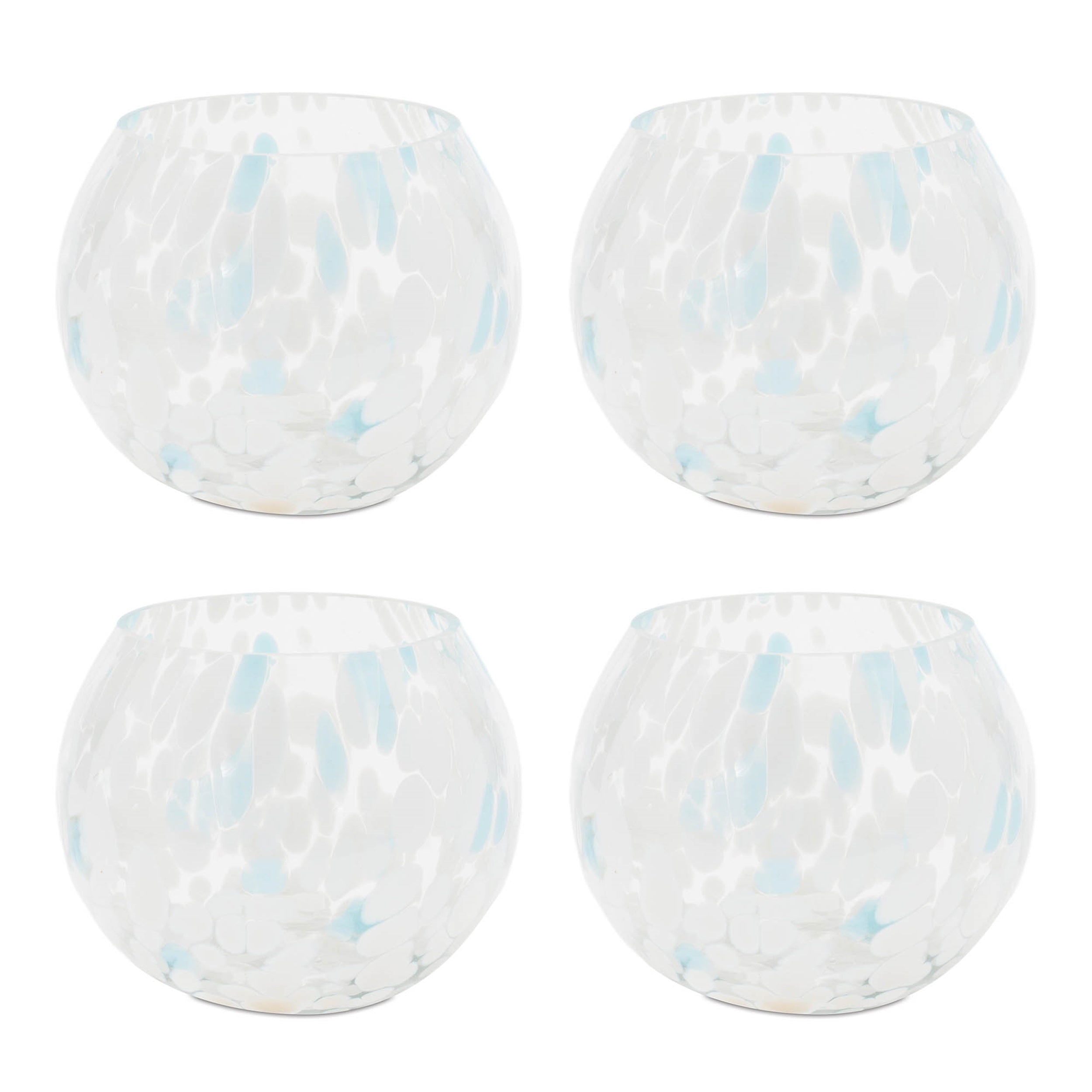 Add a fresh, coastal touch to your decor with the Painted Glass Candle Holder Vase Set. Featuring cool blue and white tones with an abstract painted design, these chic holders enhance your home with a modern feel. The clear finish offers a clean, elegant look, making them perfect for small votives or tealight candles, or even as vases to display a small bunch of fresh flower stems. Sold in a set of four, these versatile holders are a stylish addition to any space.