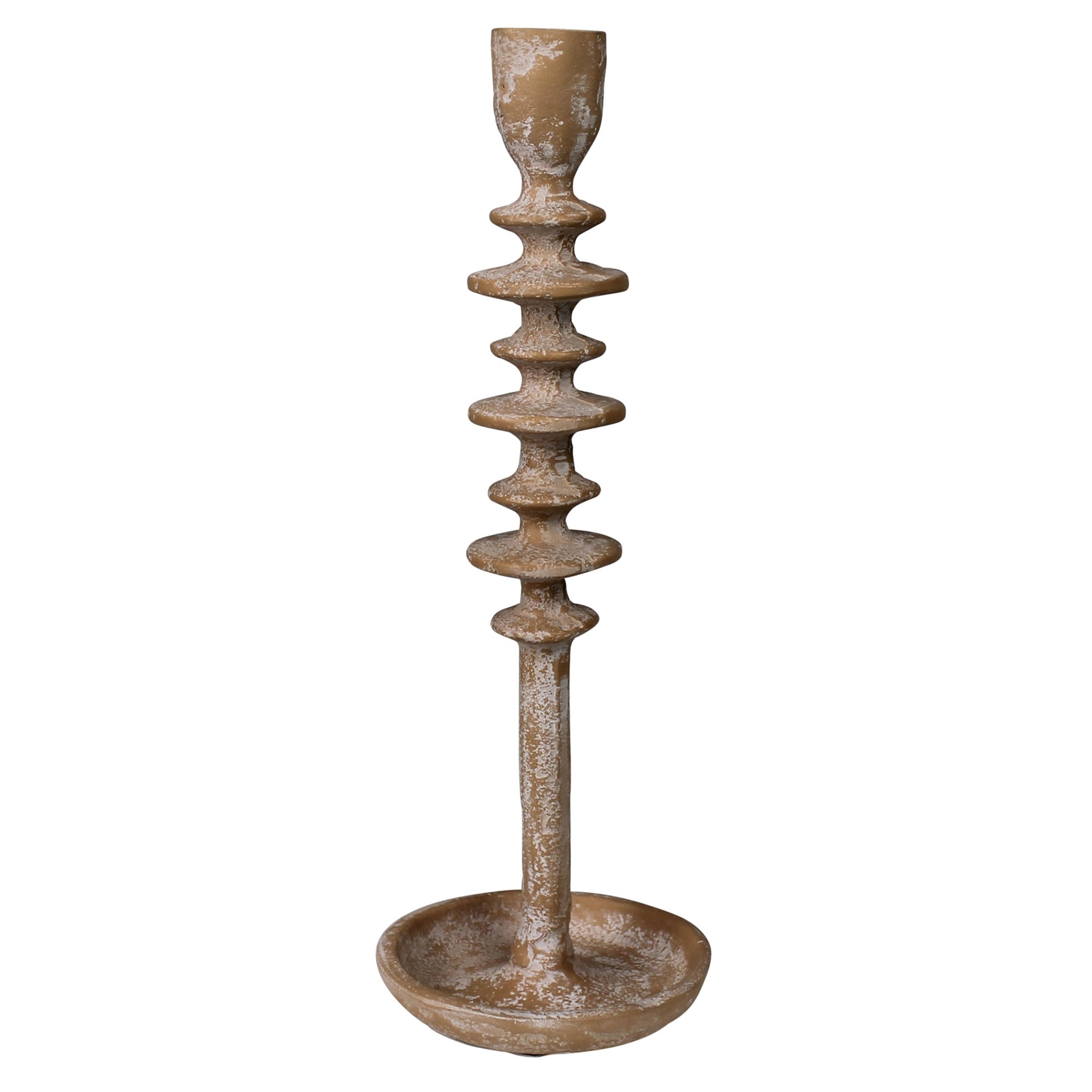Elevate your decor with our taper holder cast of aluminum with a washed terra cotta finish. Each piece exudes contemporary charm and elegance, perfect for adding a touch of sophistication to any setting.
