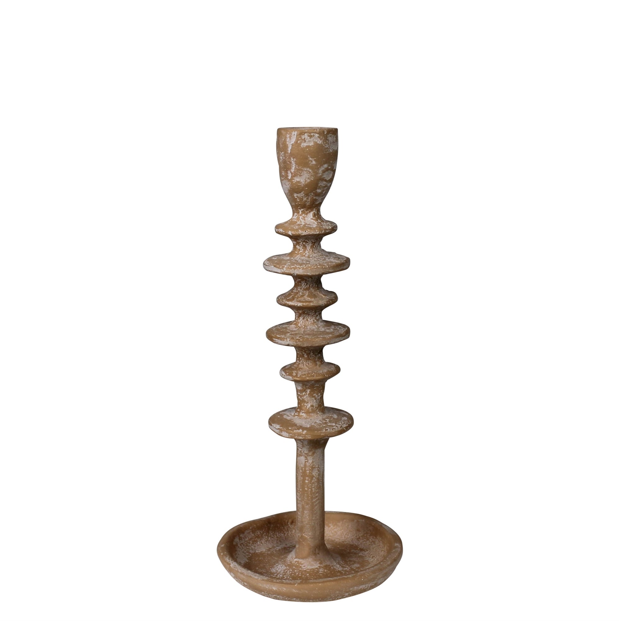 Elevate your decor with our taper holder cast of aluminum with a washed terra cotta finish. Each piece exudes contemporary charm and elegance, perfect for adding a touch of sophistication to any setting.