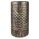 This 2nd Quality item might have uneven antique finish and imperfect etched pattern. Thick blown glass is given a silver plated finish, antiqued then etched with a graphically pleasing pattern which emits a warm candlelit glow. All sales are final.