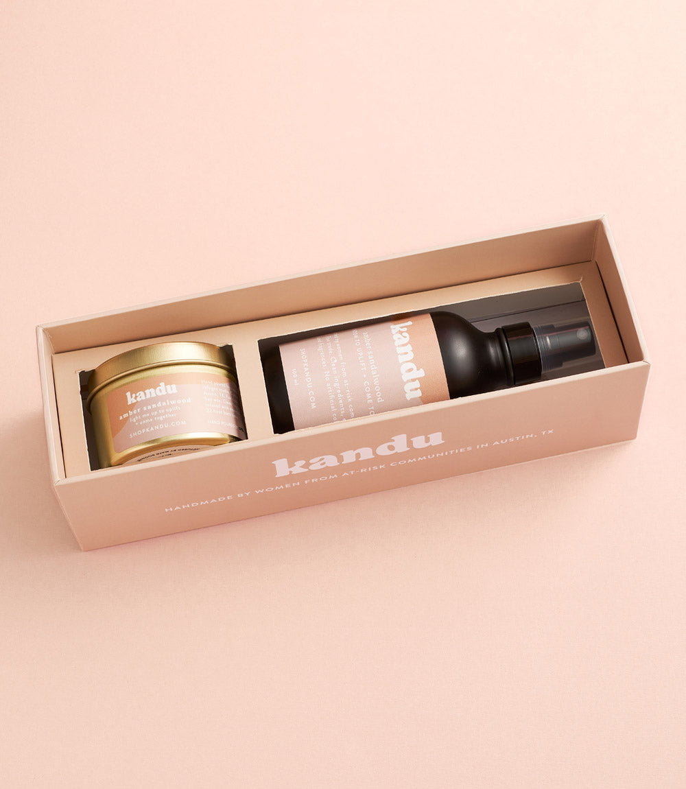 Amber Sandalwood Room Spray and Candle Gift Set