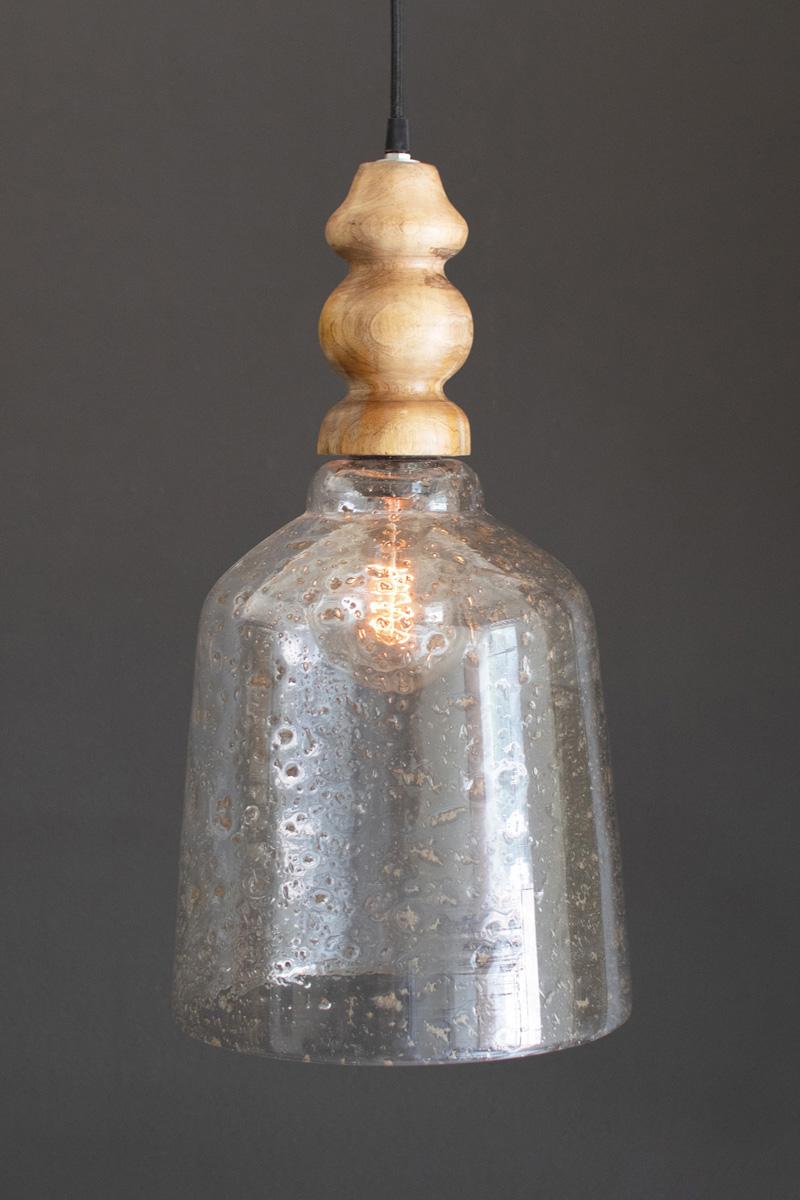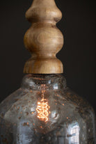 Clear Pebbled Glass Pendant Light With Wooden Finial