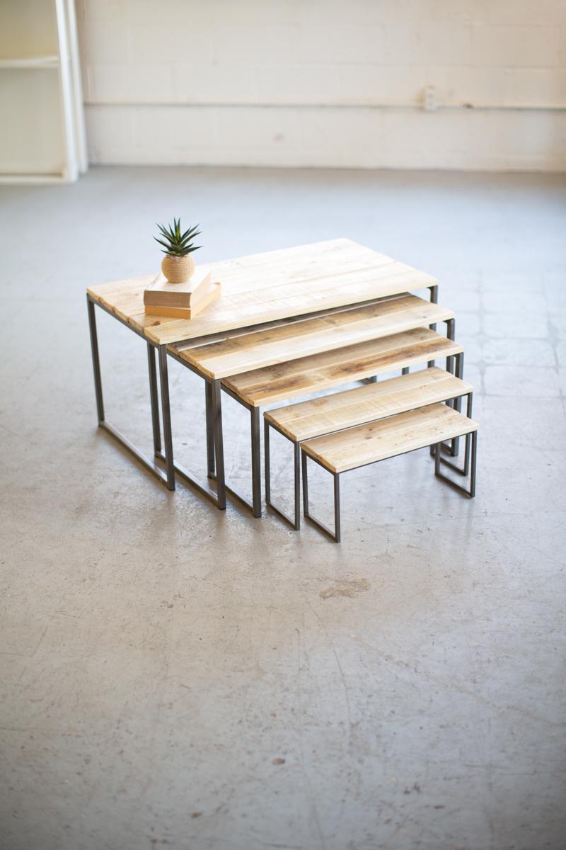 Set Of Five Iron & Recyc Wood Rect Nesting Display Risers