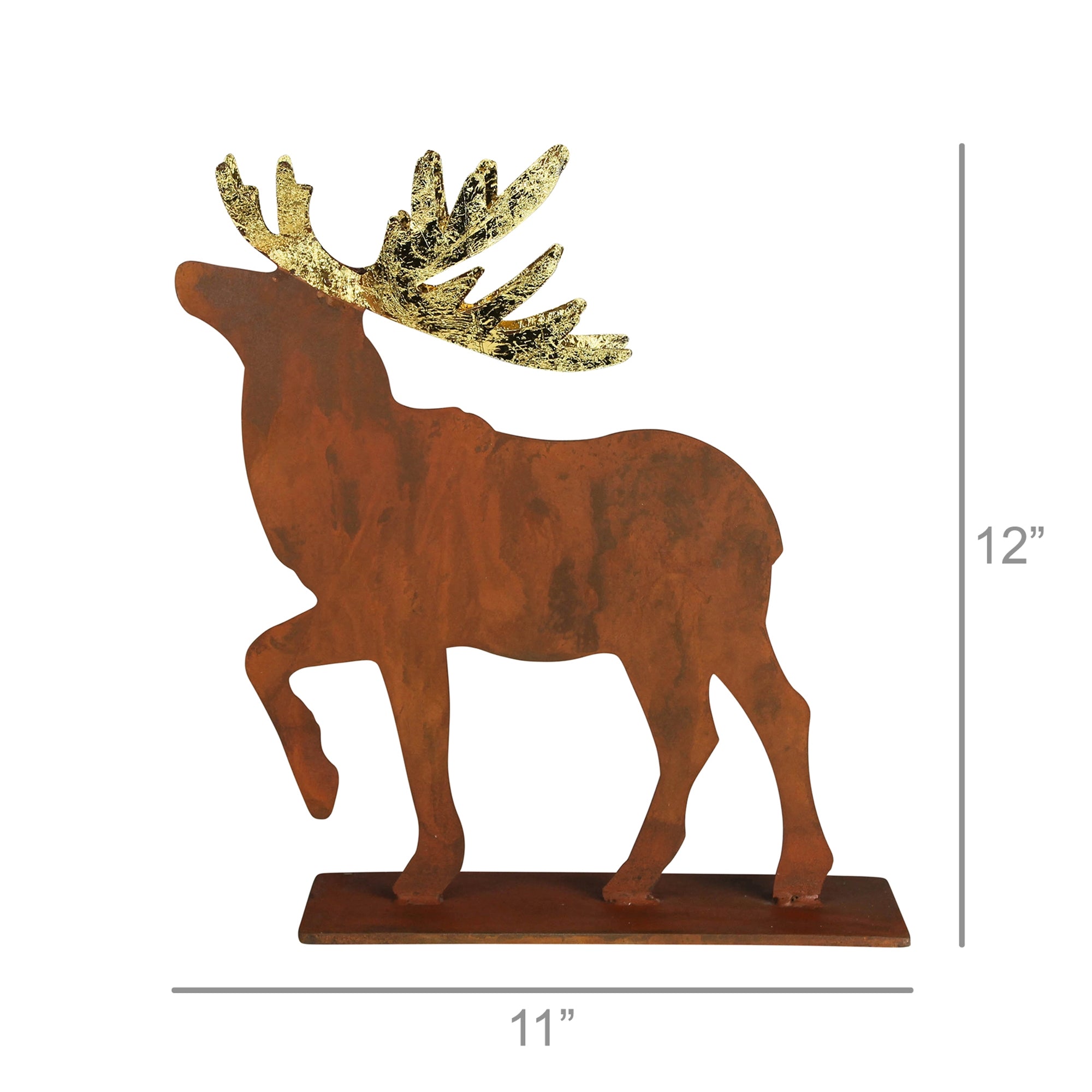 A mix of rusty rustic and gold leaf glam make these iron reindeer the perfect addition to a wide range in styles of holiday decor.