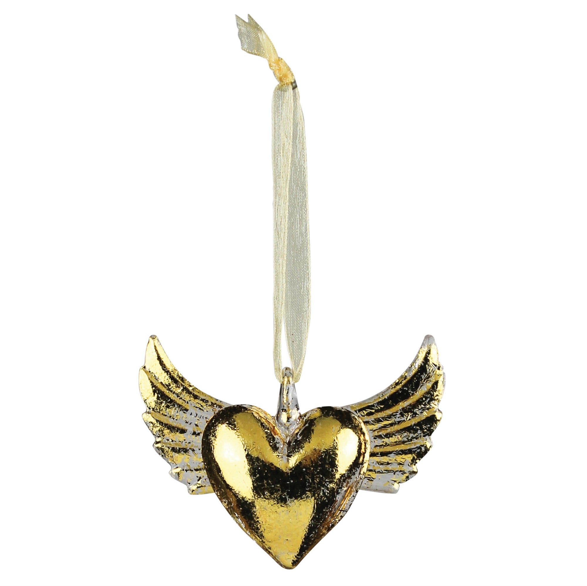 Made of solid glass and accented with gold leaf this flying glass heart adds a touch of love to holiday decor, a gift, or a valentine.