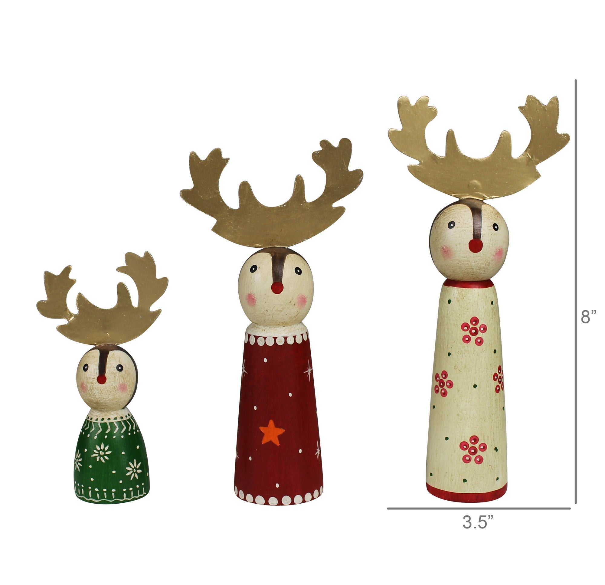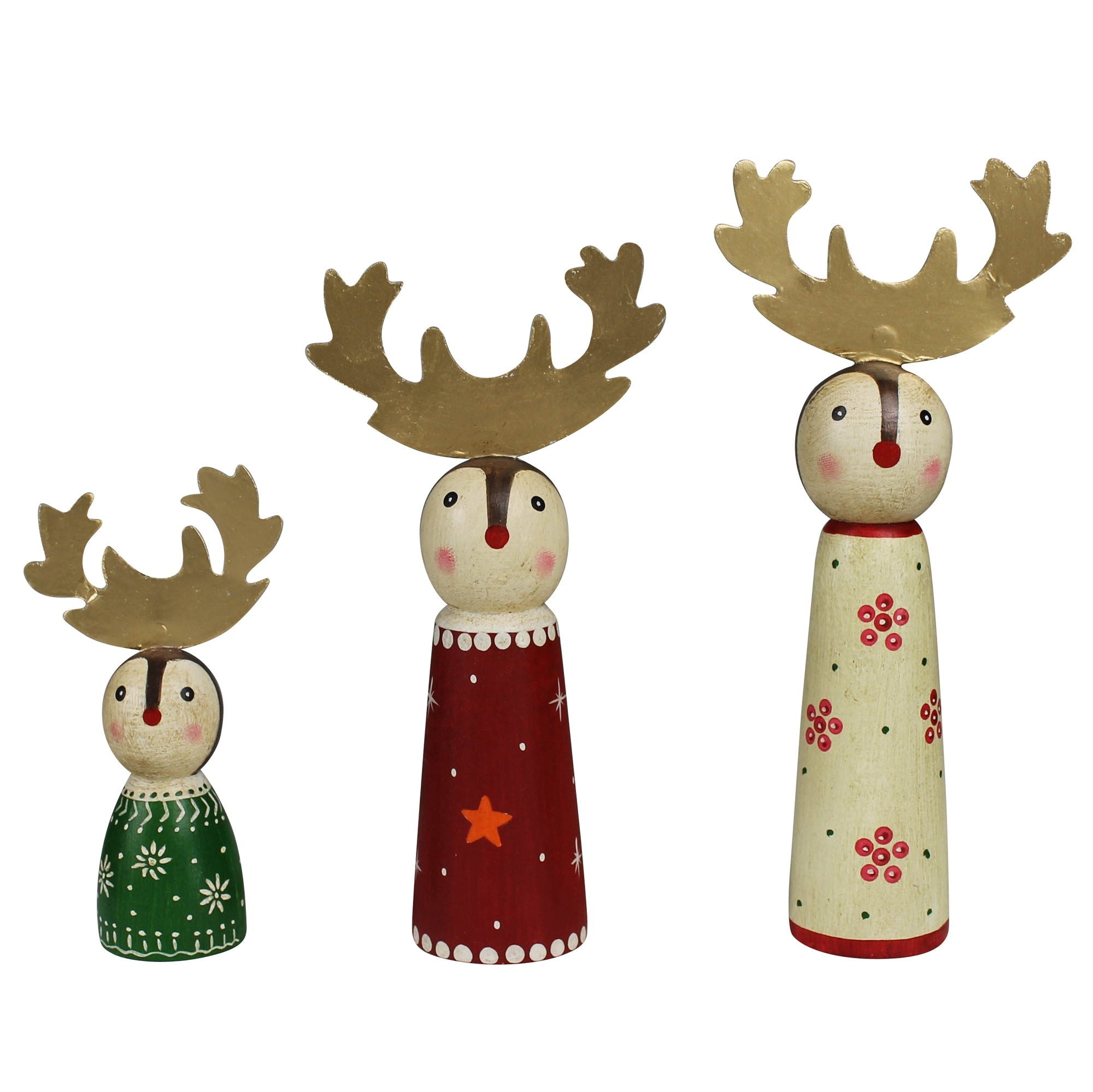 Carved from wood and metal with hand painted details this trio of moose add a touch of sweetness to holiday décor.