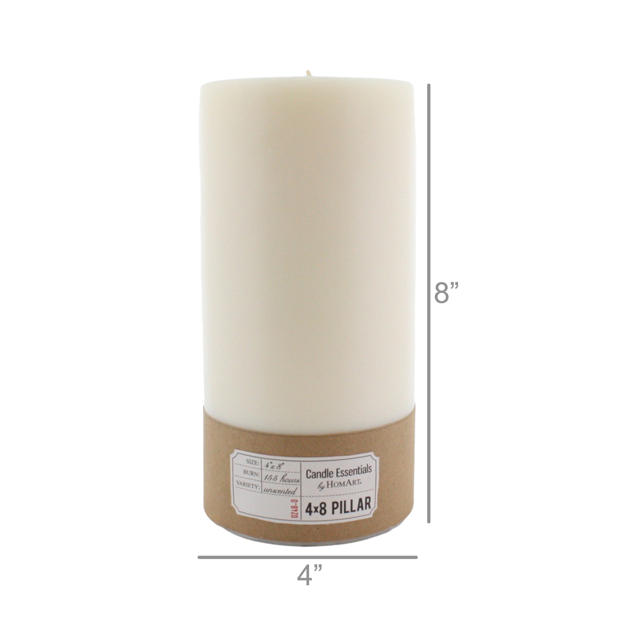 The essentials are all that you need. Each candle is poured using a high quality blend of unscented paraffin and palm wax in a creamy shell white color with a 100% cotton wick. 155 hour burn time