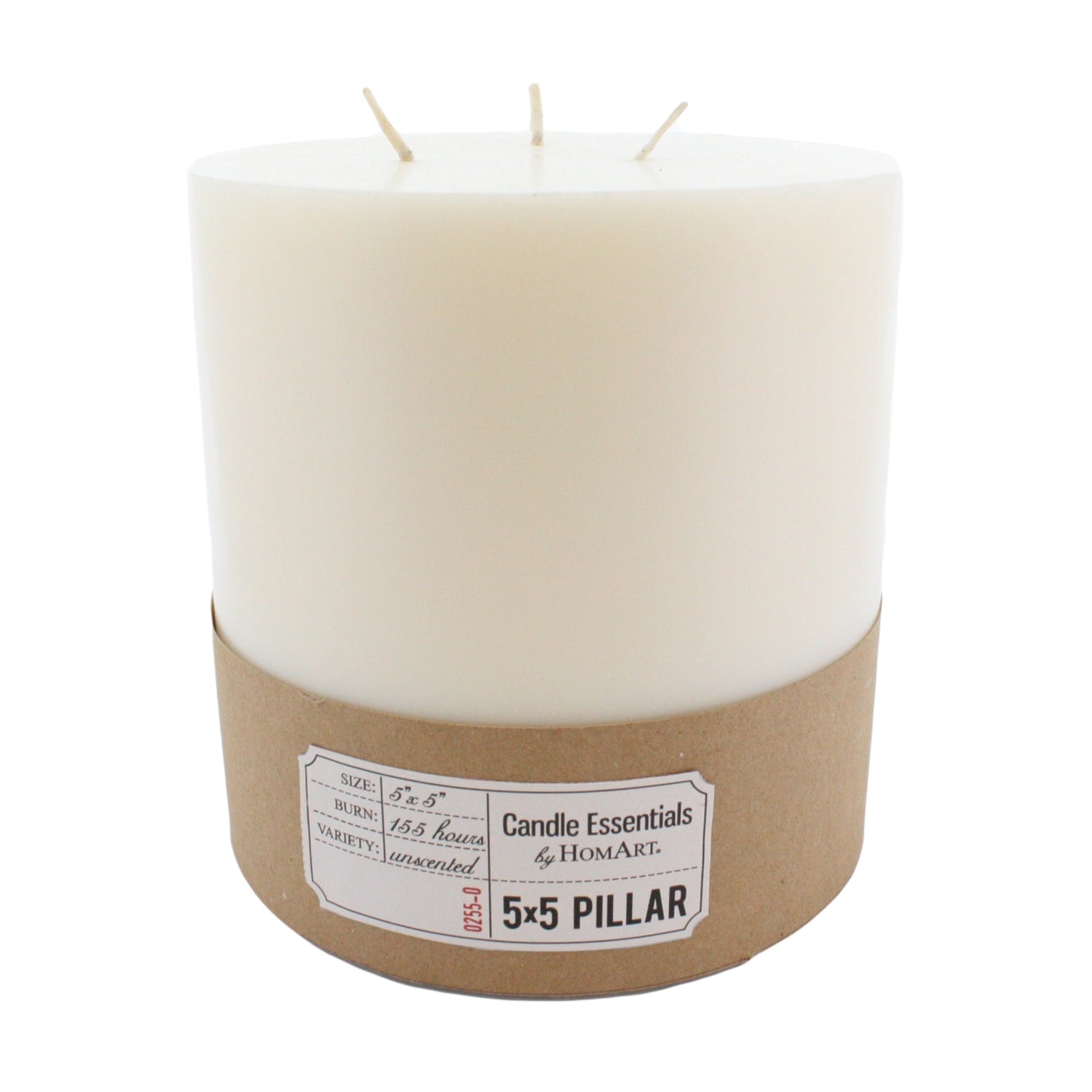 The essentials are all that you need. Each candle is poured using a high quality blend of unscented paraffin and palm wax in a creamy shell white color with a 100% cotton wick. 155 hour burn time