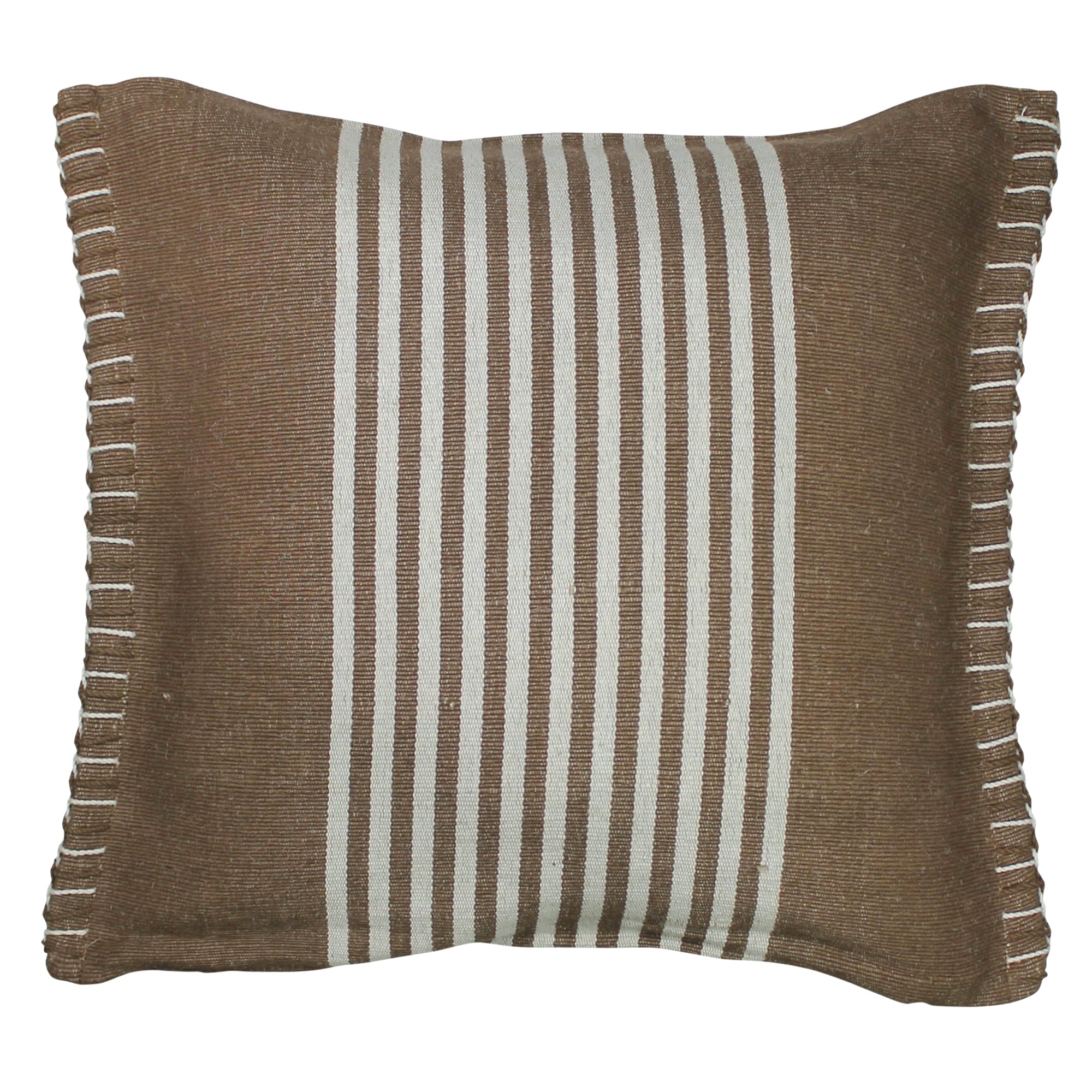 Woven of cotton and jute with a classically timeless stripe and whip-stitched side this pillow fits any style, from coastal to rural and everyplace in between. Includes polyester fiber pillow insert.
