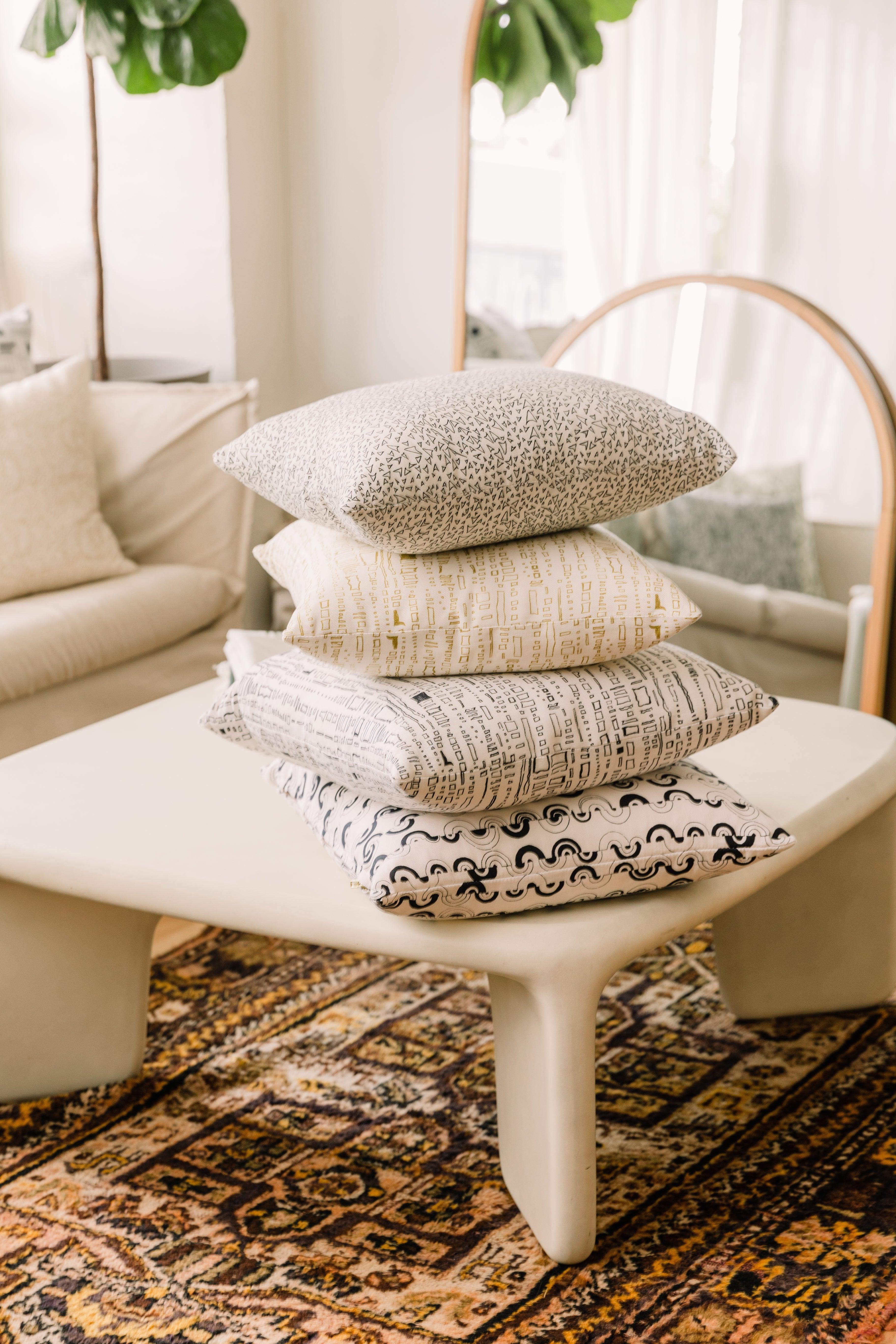This 16" X 20" pillow features the Basilone print in Albatross, inspired by endless Summer sessions at one of Courtney's favorite spots.