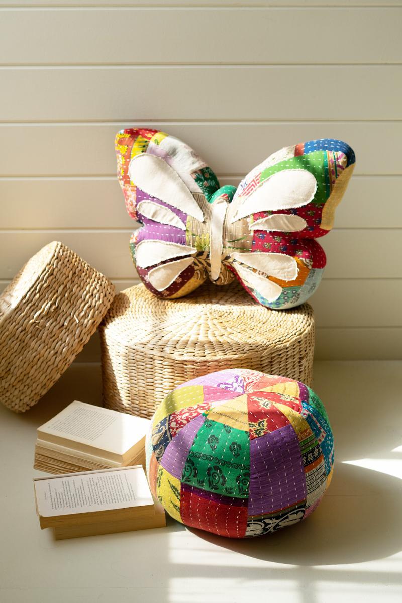 Give your space wings. Complete your butterfly-themed space with this kantha throw pillow. Coordinate this soft piece with our butterfly planters and vases in similar colors.