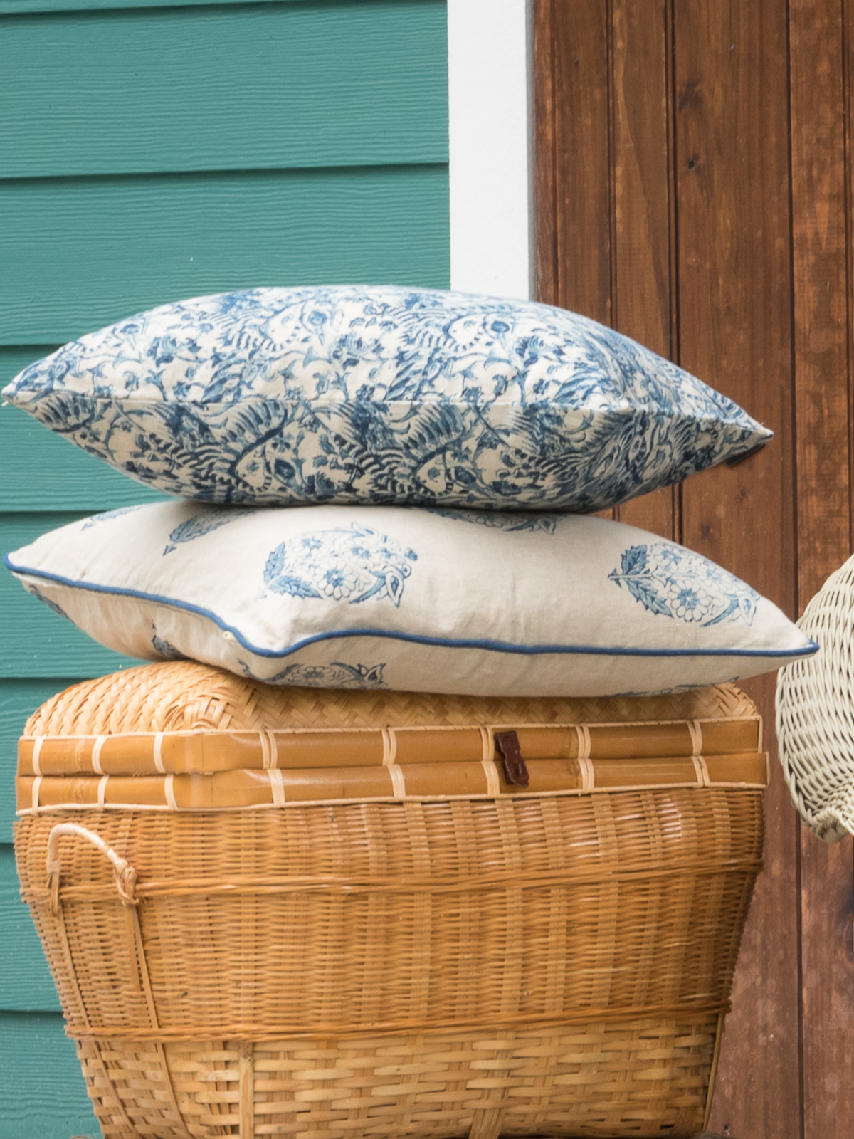 Classic chintz - Crane - printed in indigo. Print is on both sides of pillow.