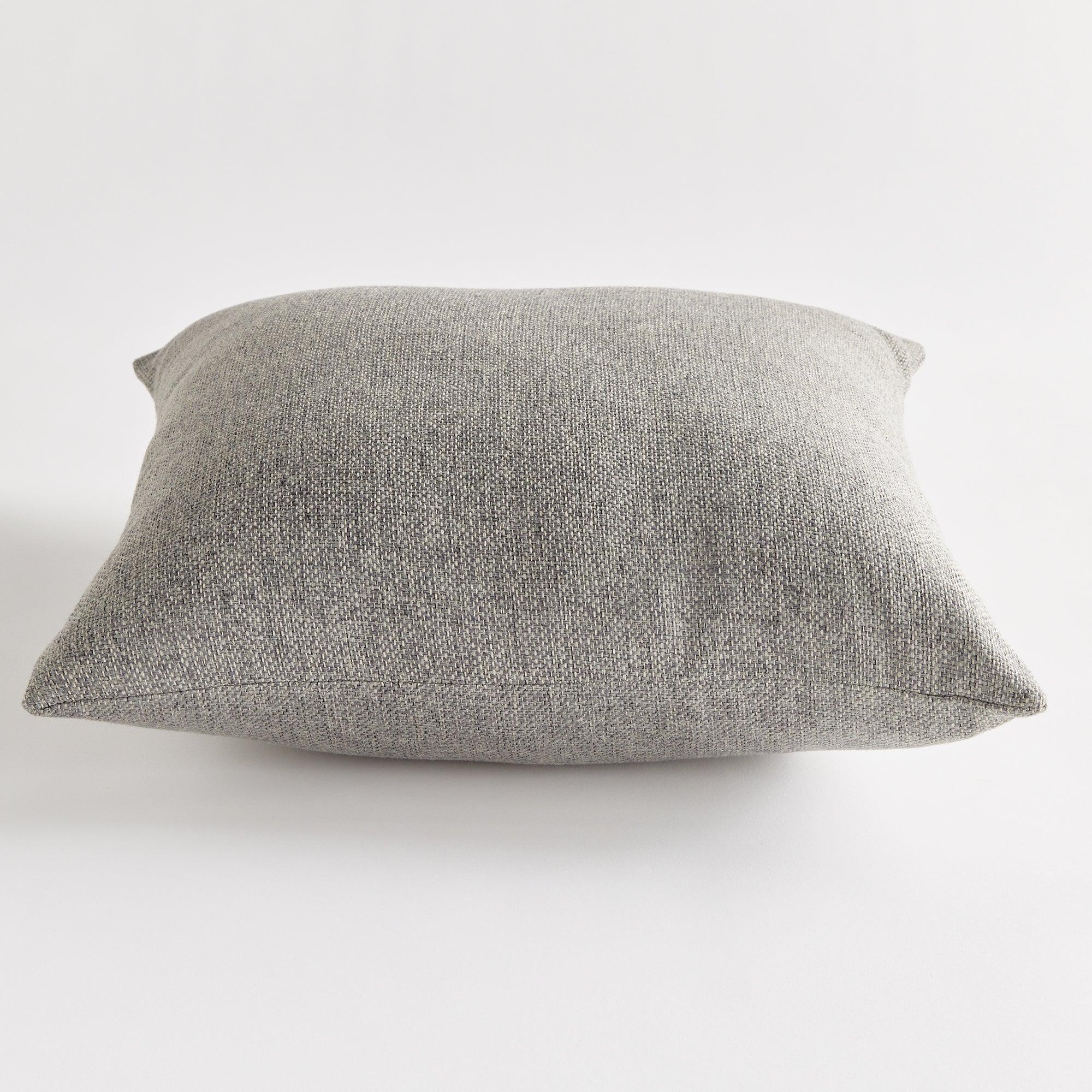 The indoor pillow that lives beautifully outdoors. Enjoy the upscale luxury and durability of Jacquard. With a woven gray texture, it plays well with any palette. This pillow is weather resistant and responsibly made. Filled with 100% recycled fibers.