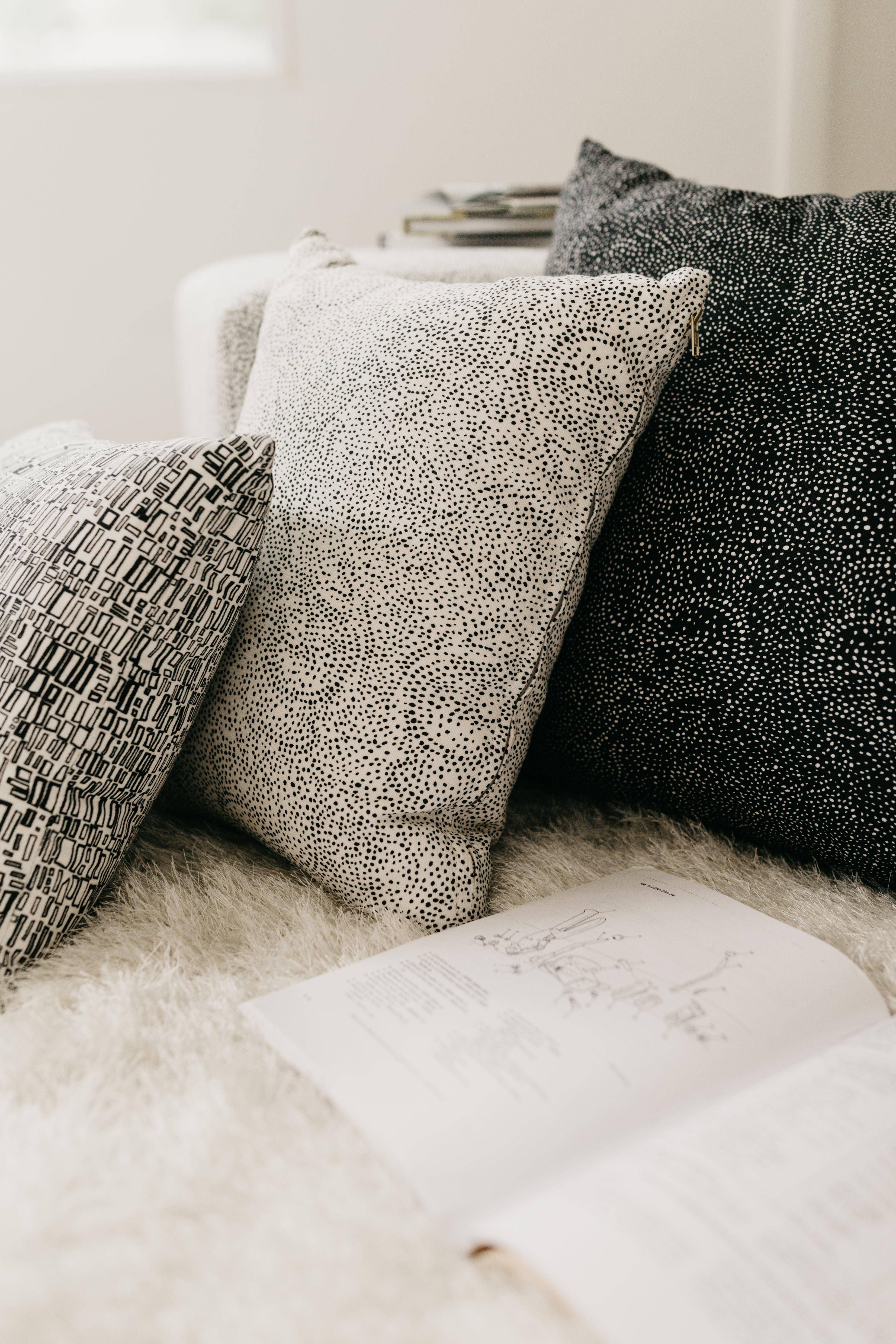 This pillow is responsibly printed, cut and sewn in the US on a 55% linen and 45% cotton blend with yarns from Belgium.