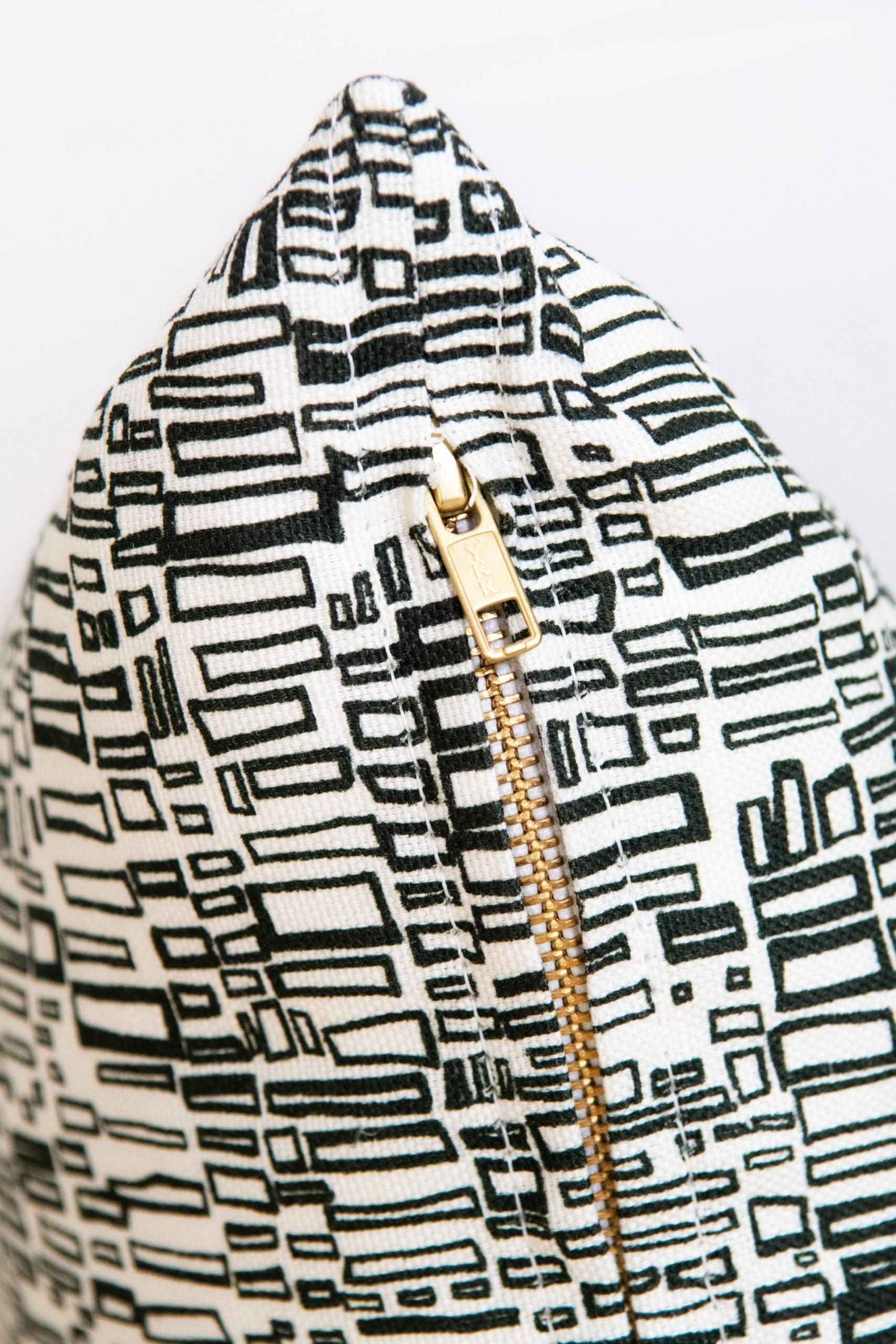 This pillow is responsibly printed, cut and sewn in the US on a 55% linen and 45% cotton blend with yarns from Belgium.