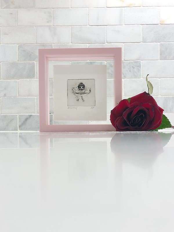- 2.5” square etching limited edition print in 5x5" mat for small table easel or your 5x5 standard size frame