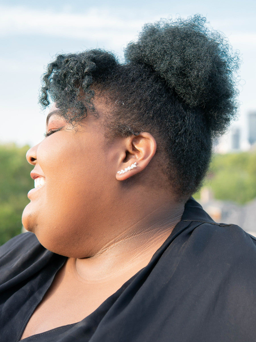 These silver leaf studs can be worn with the leaves facing down, or flip the stud up to create the look of an ear runner. Such a cute earthy and natural-inspired look.
