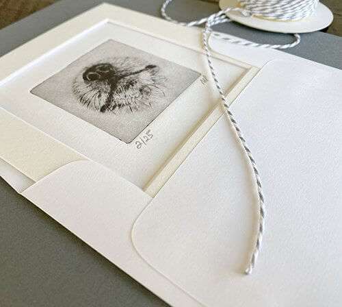 - 2.5” square etching limited edition print in 5x5" mat for small table easel or your 5x5 standard size frame