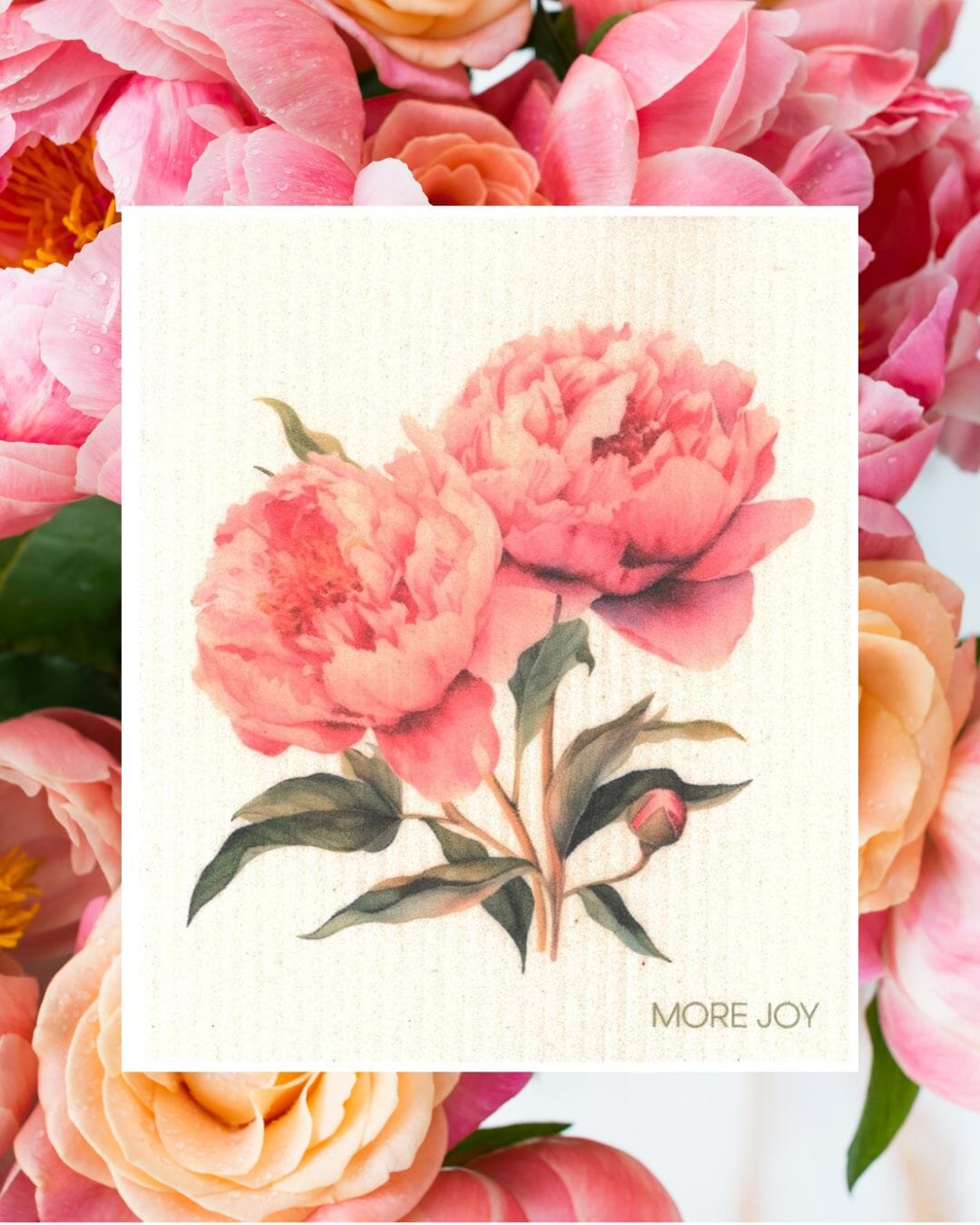 Add instant glamour to your kitchen! Featuring dramatic peony blooms in pink, this gorgeous Swedish dishcloth is certain to brighten your day.