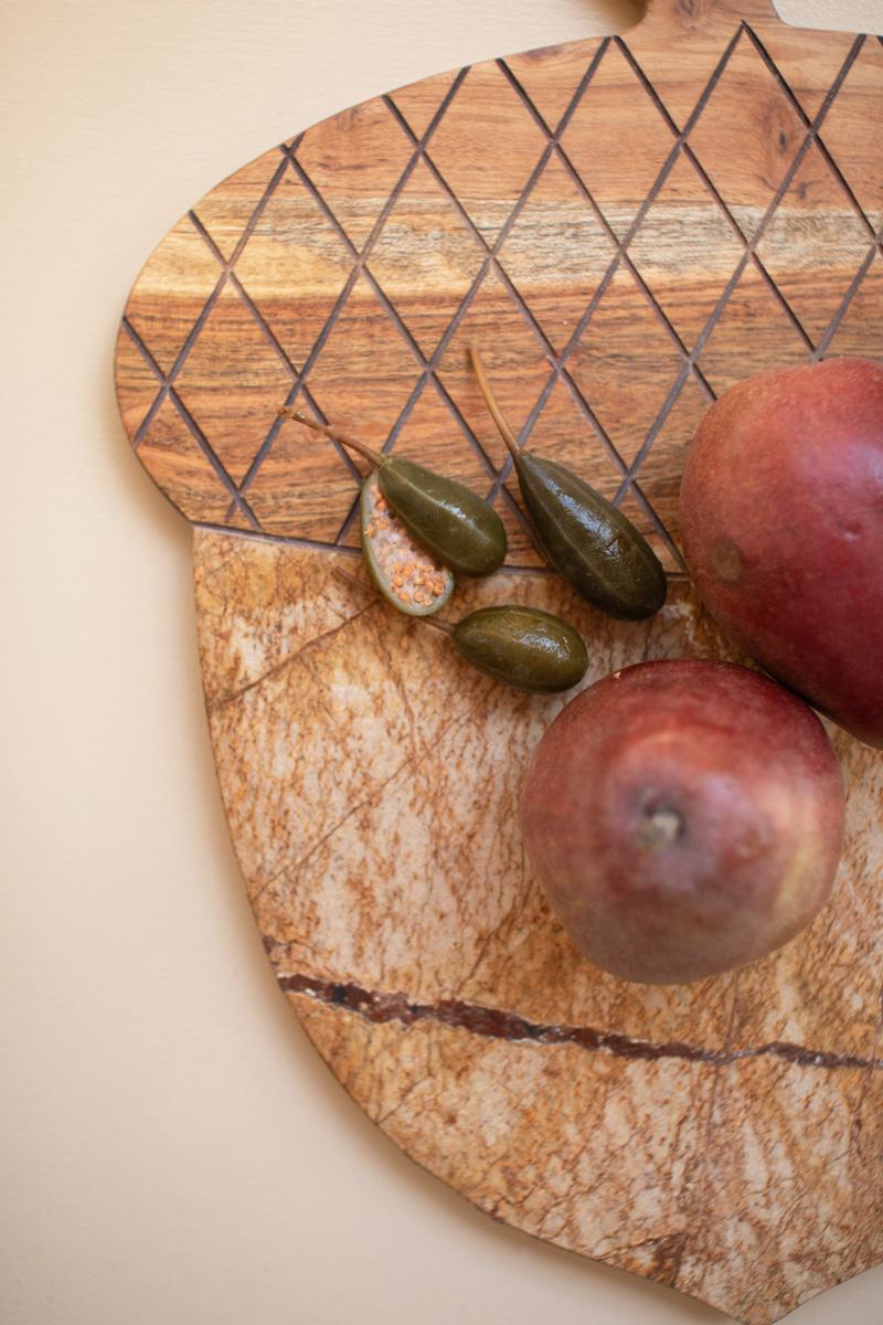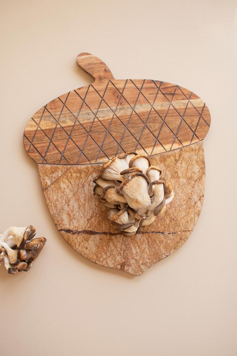 Acacia Wood And Marble Acorn Serving Board (Pack Of 2)